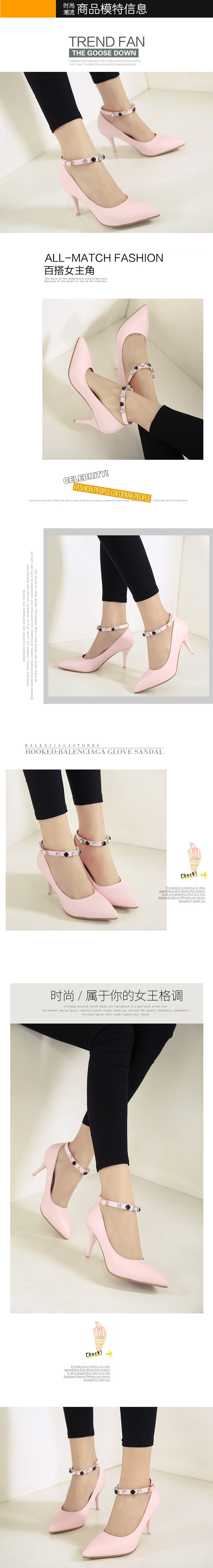 美汇特供:2017夏新款欧美尖头细跟高跟鞋浅口性感搭扣钻石单鞋