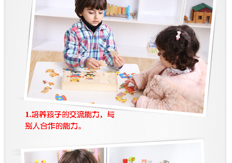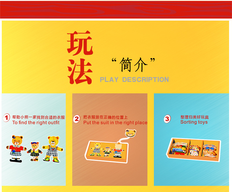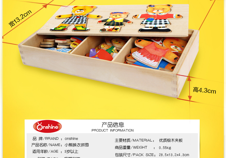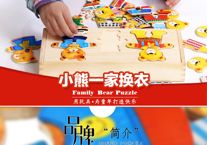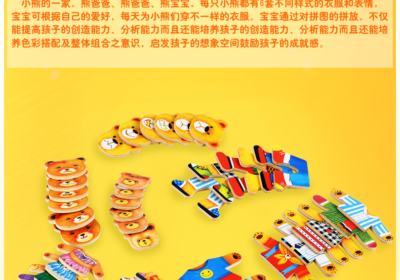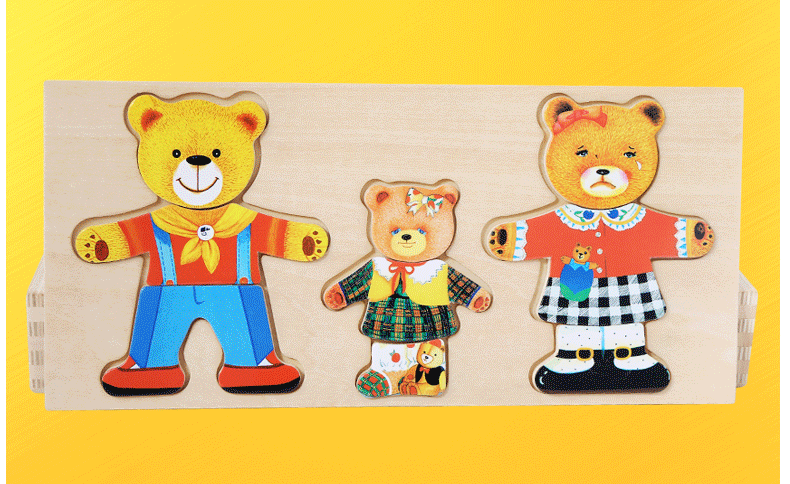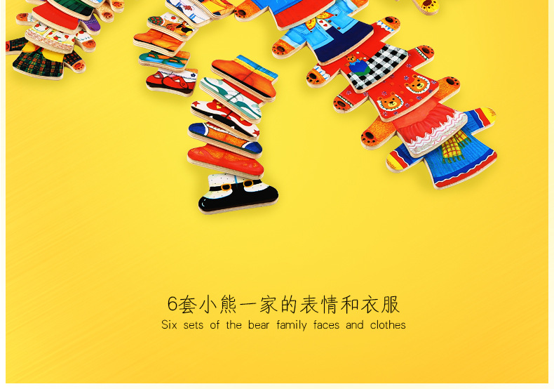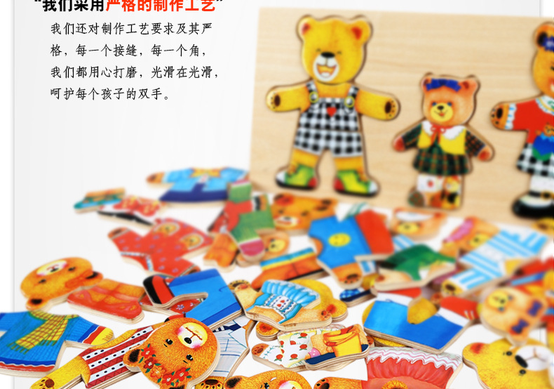 美汇特供:儿童小熊换衣服益智拼图游戏早教1-3-6周岁木质积木宝宝穿衣玩具