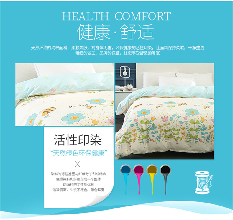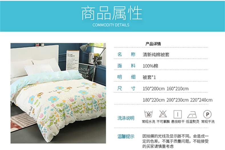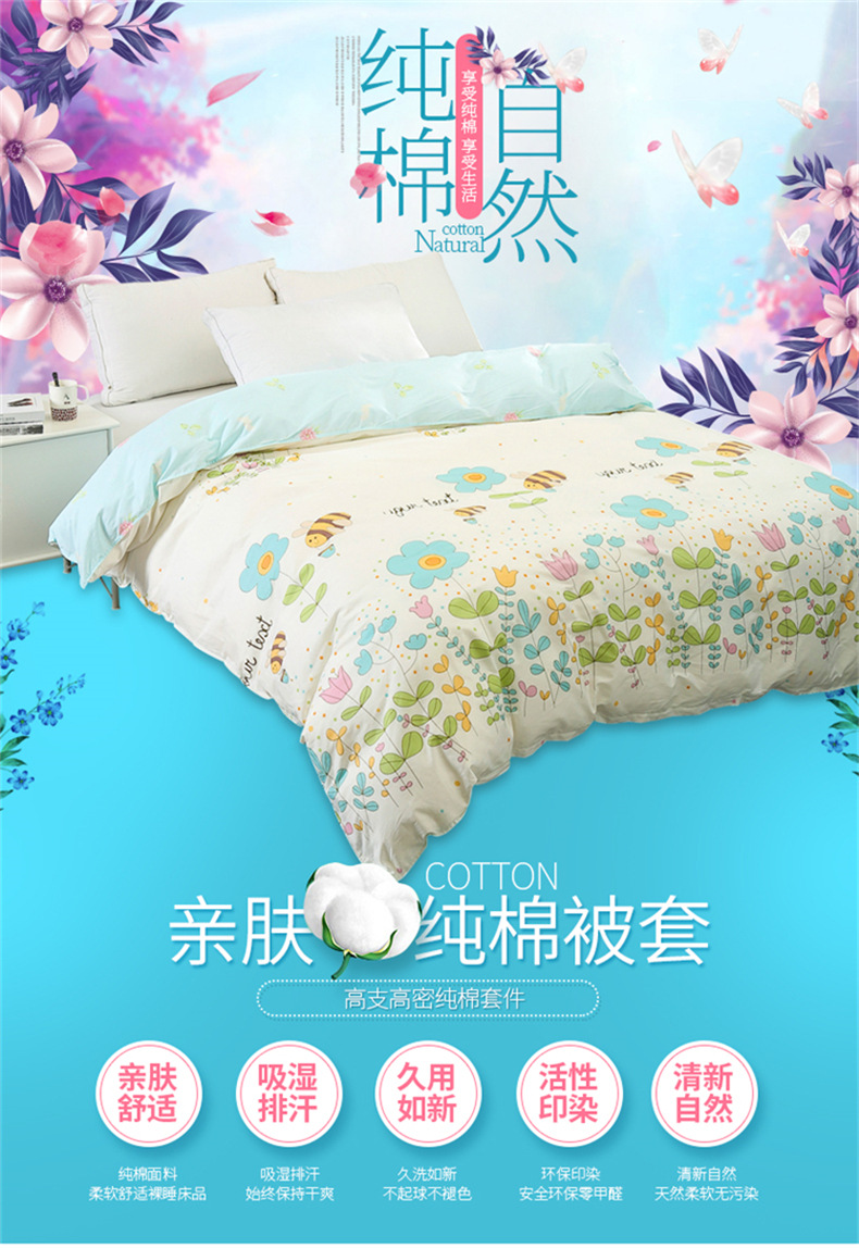 美汇特供:新款床上用品全棉斜纹印花被套小清新纯棉单件被套