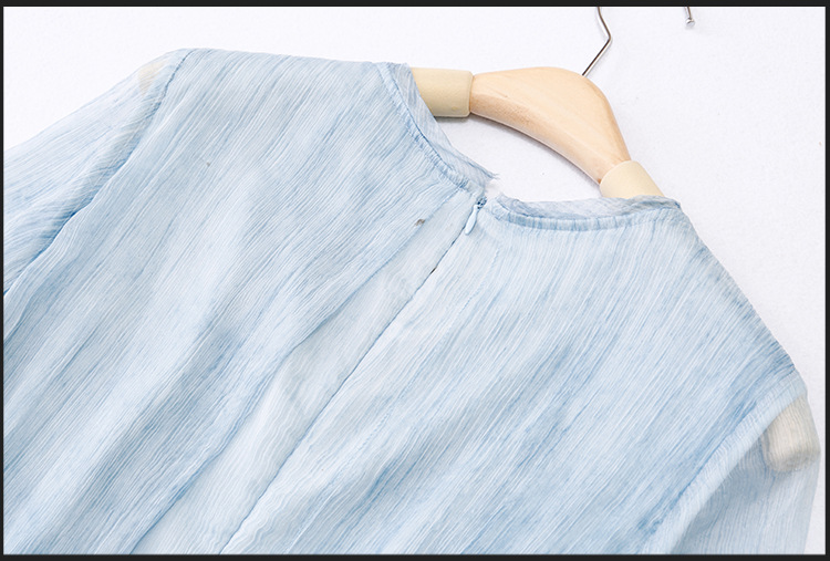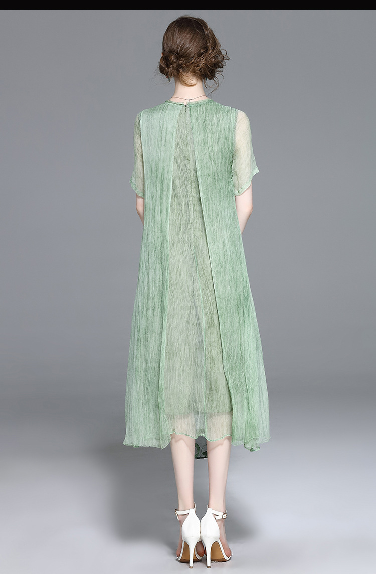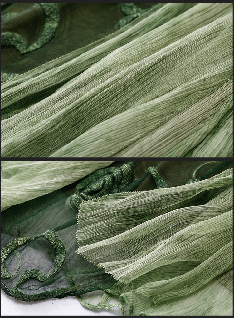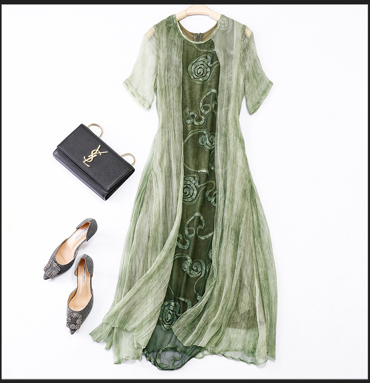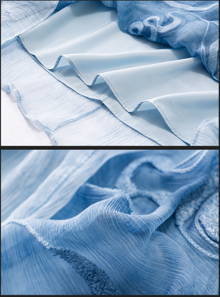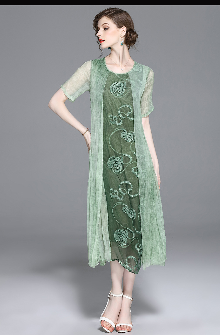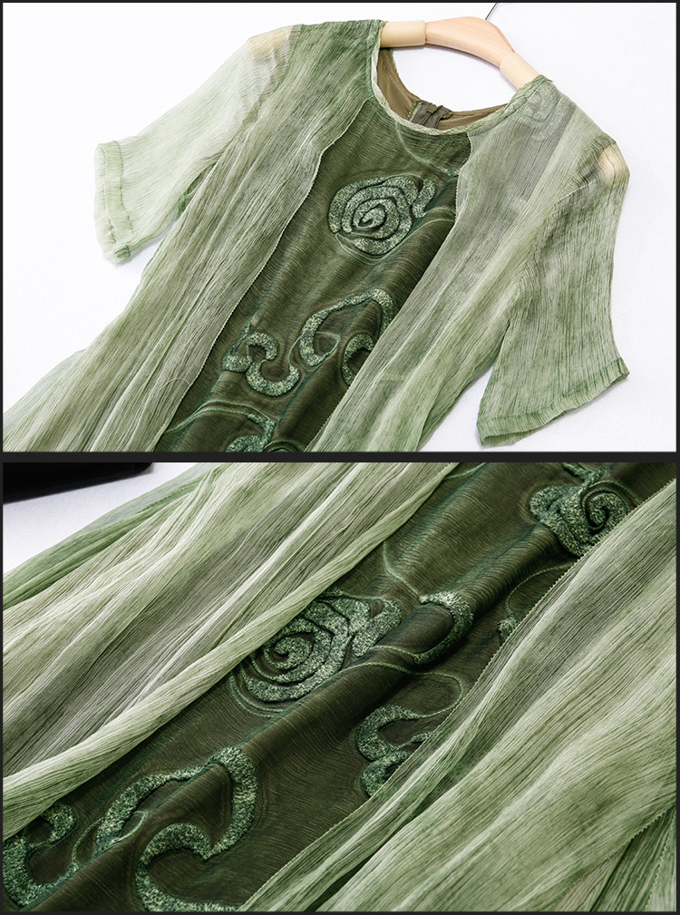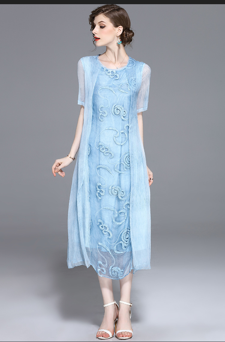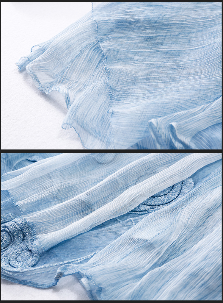 美汇特供:2017夏季新款欧美女装真丝拼接刺绣绣花修腰连衣裙