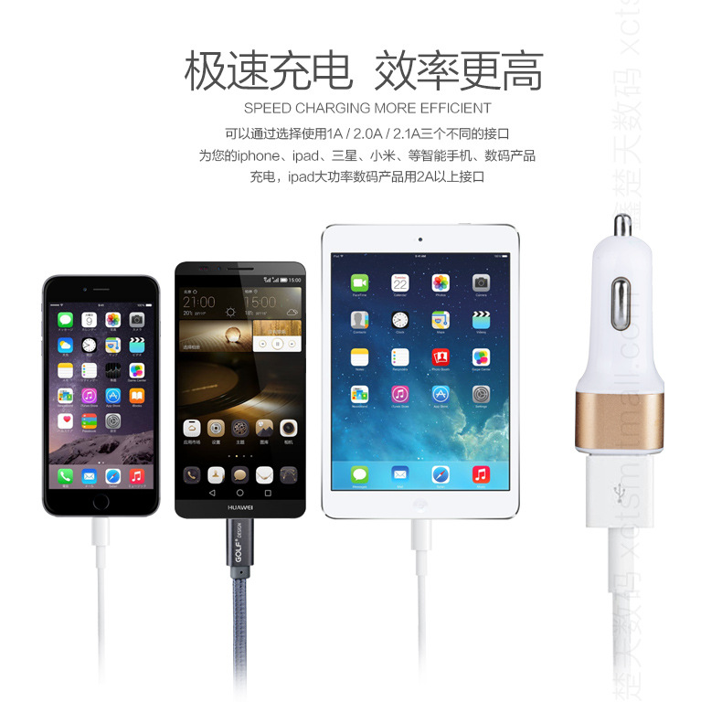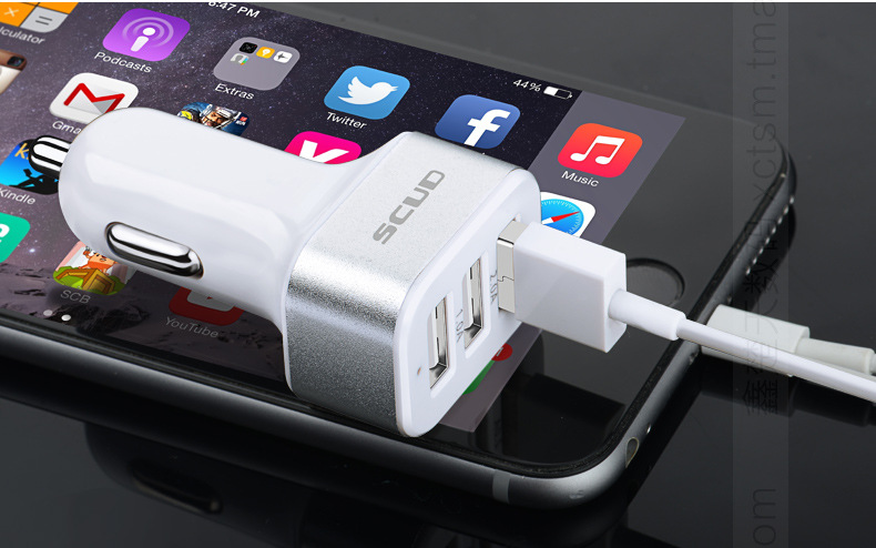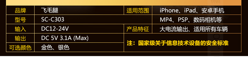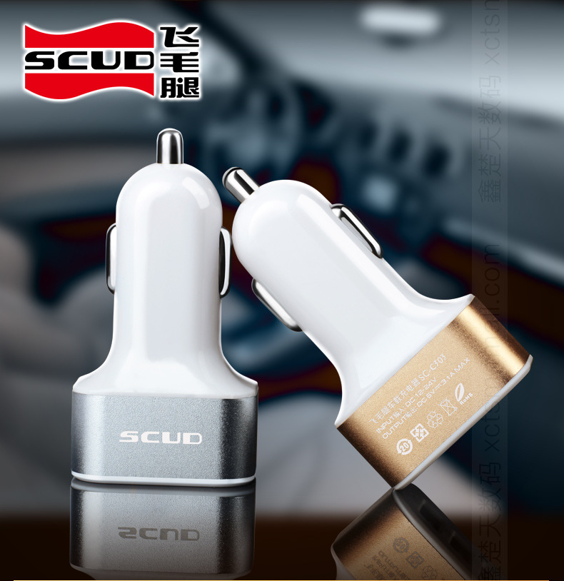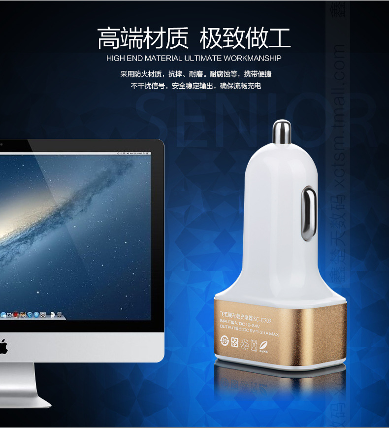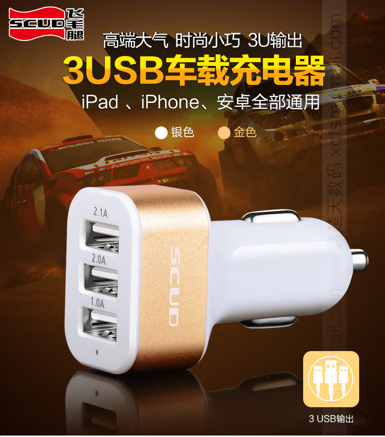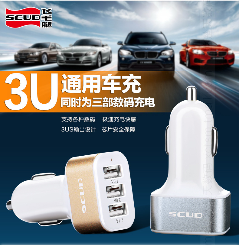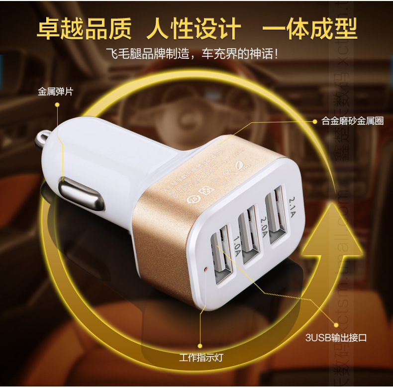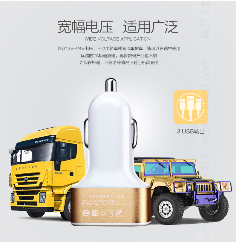 美汇特供:飞毛腿C303 车载充电器 一拖三 车充 3USB 12v 24v汽车充电器