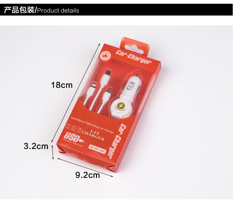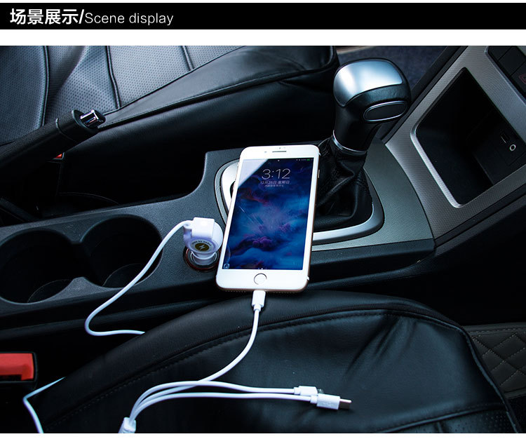 美汇特供:汽车一拖三车载手机充电器 充电器单USB 一分三車充