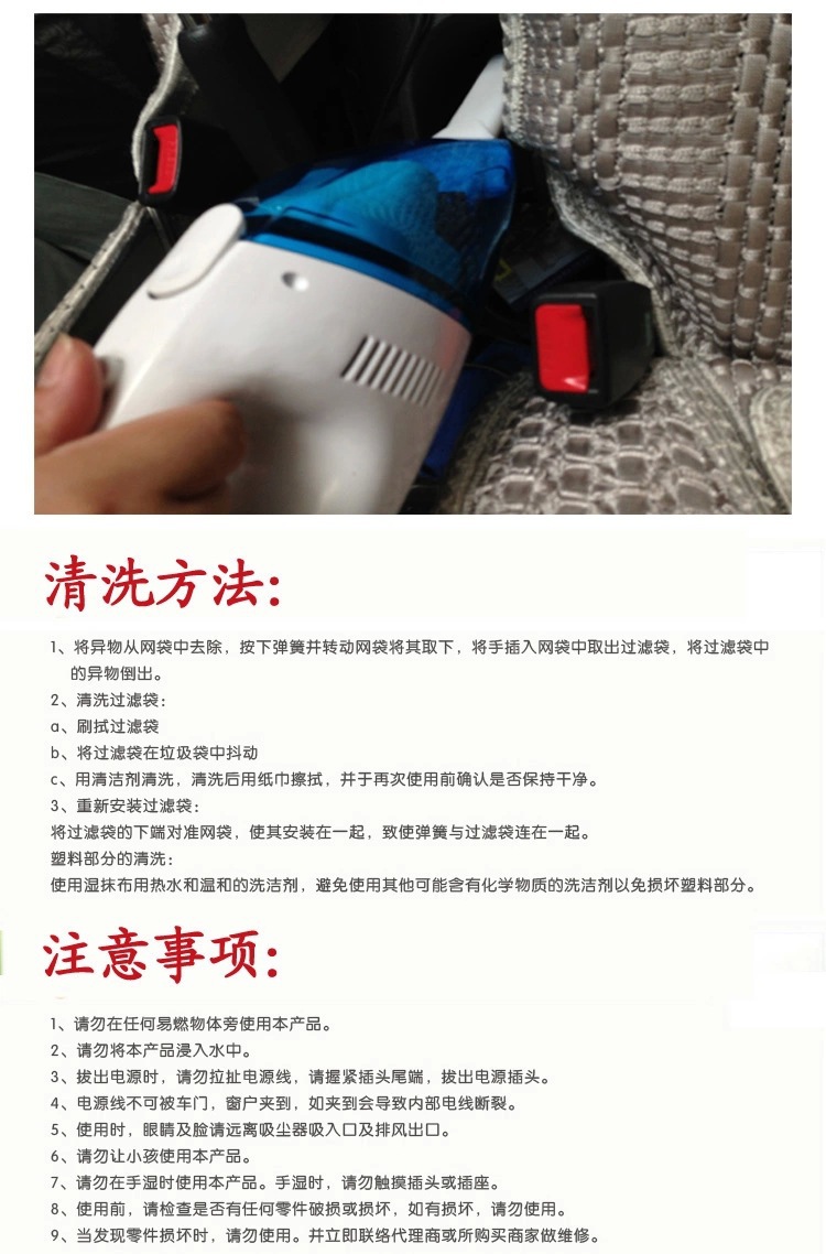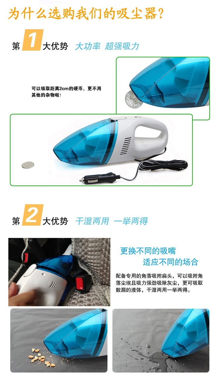 美汇特供:车用便携吸尘清洁大号款干湿两用车载迷你吸尘器