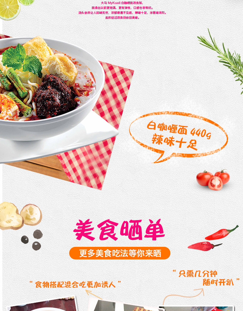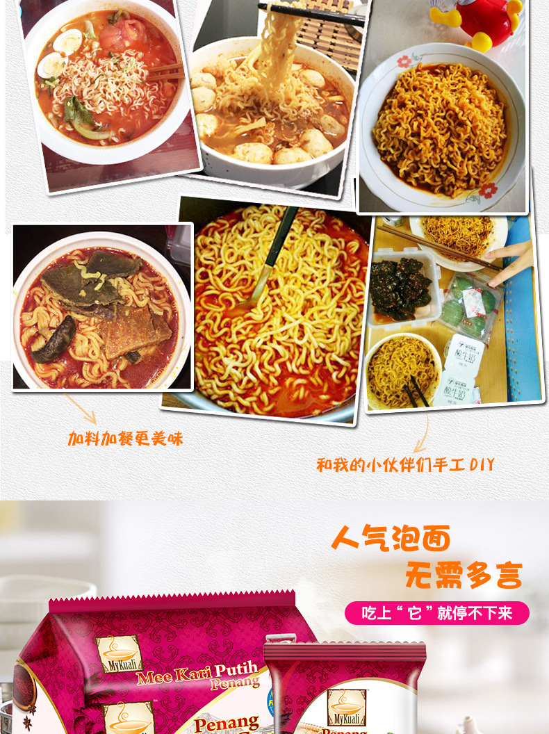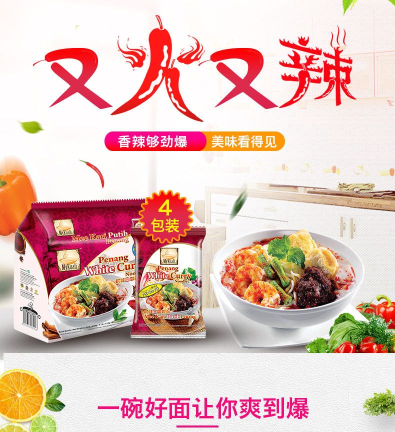 美汇特供:马来西亚槟城进口白咖喱方便面速食泡面袋装面条泡面方便面110克X4包*2袋