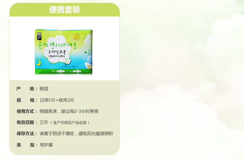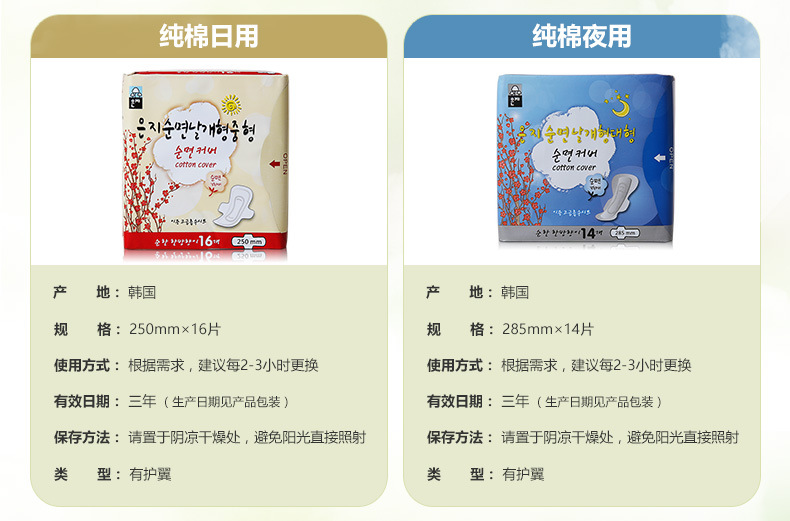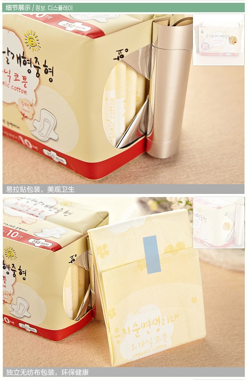 美汇特供:恩芝 韩国进口卫生巾 纯棉日用卫生巾250mm10片装 防过敏无荧光剂