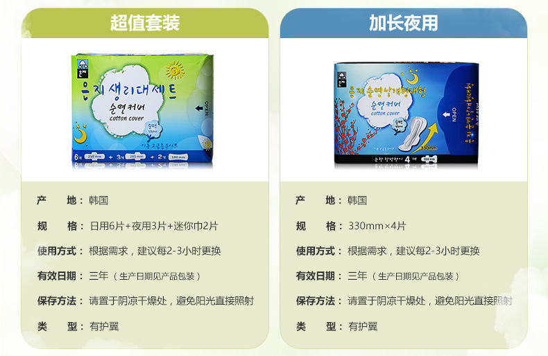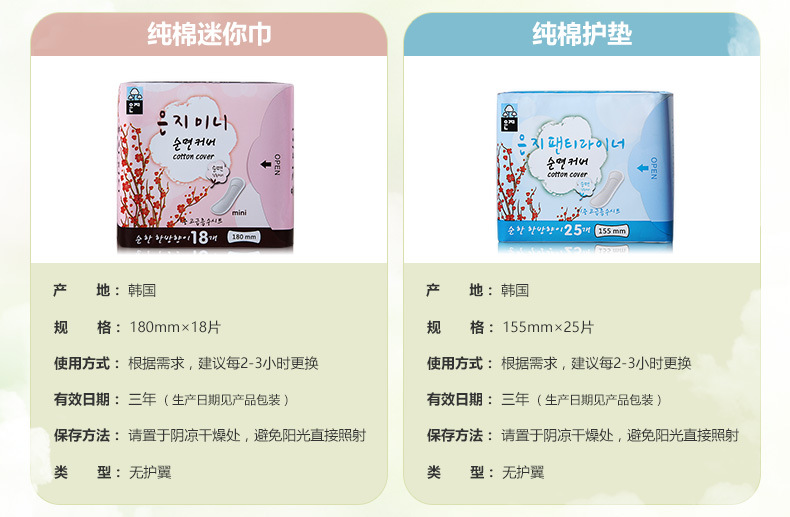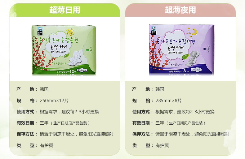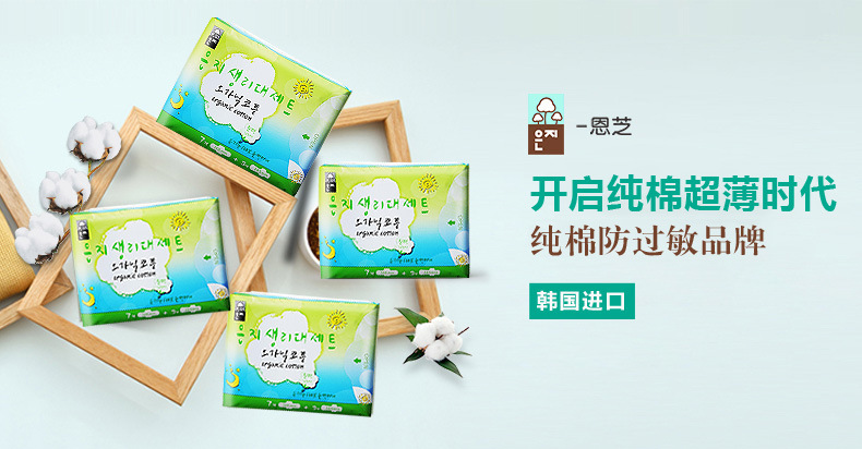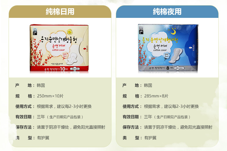 美汇特供:恩芝韩国进口卫生巾 超薄棉柔日用夜用套装10片 纯棉姨妈巾便携装