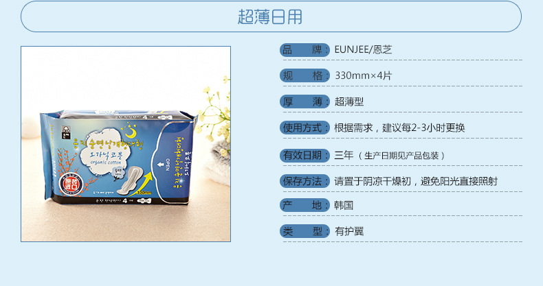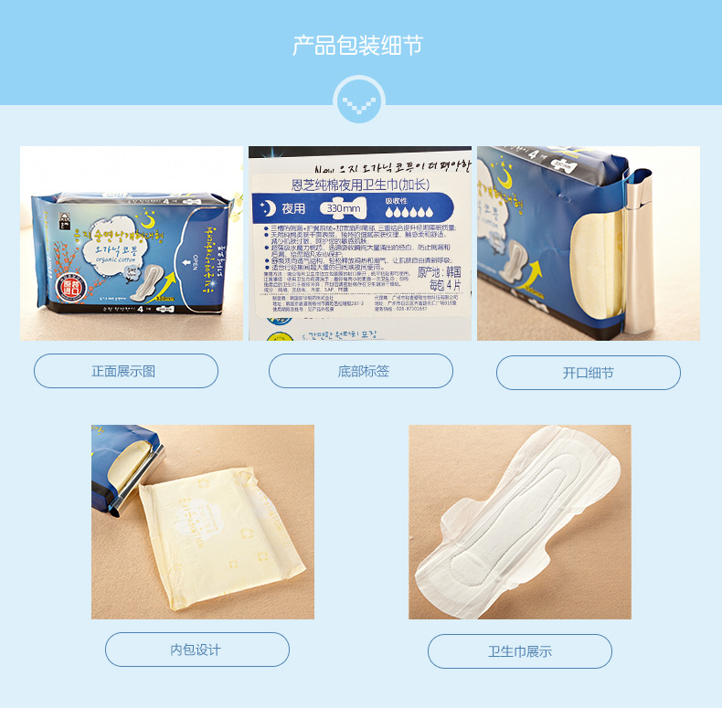 美汇特供:恩芝进口卫生巾纯棉夜用卫生巾防过敏超吸收加长型330mm4片装*2包