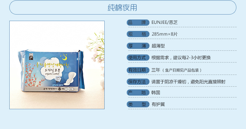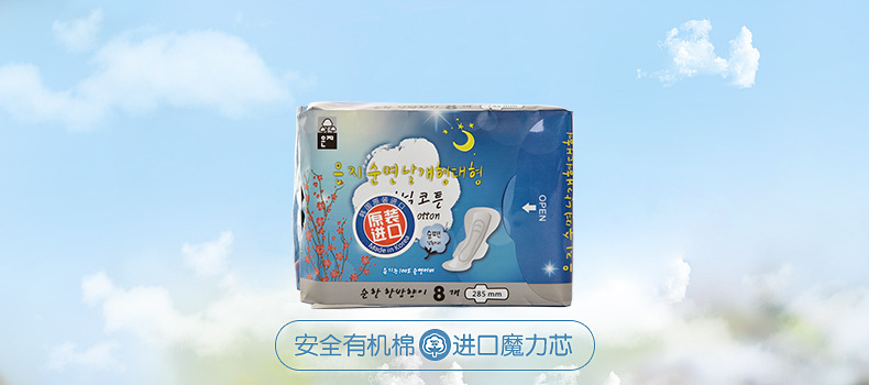 美汇特供:恩芝韩国进口卫生巾 纯棉柔亲肤夜用装285mm/8片装*2包