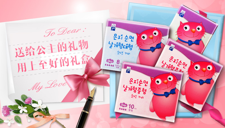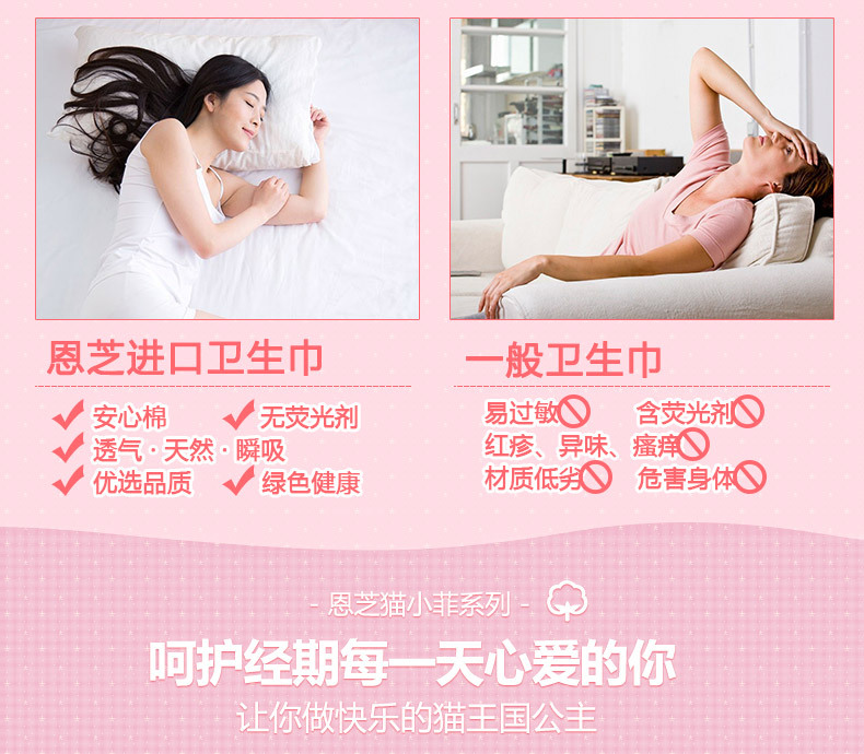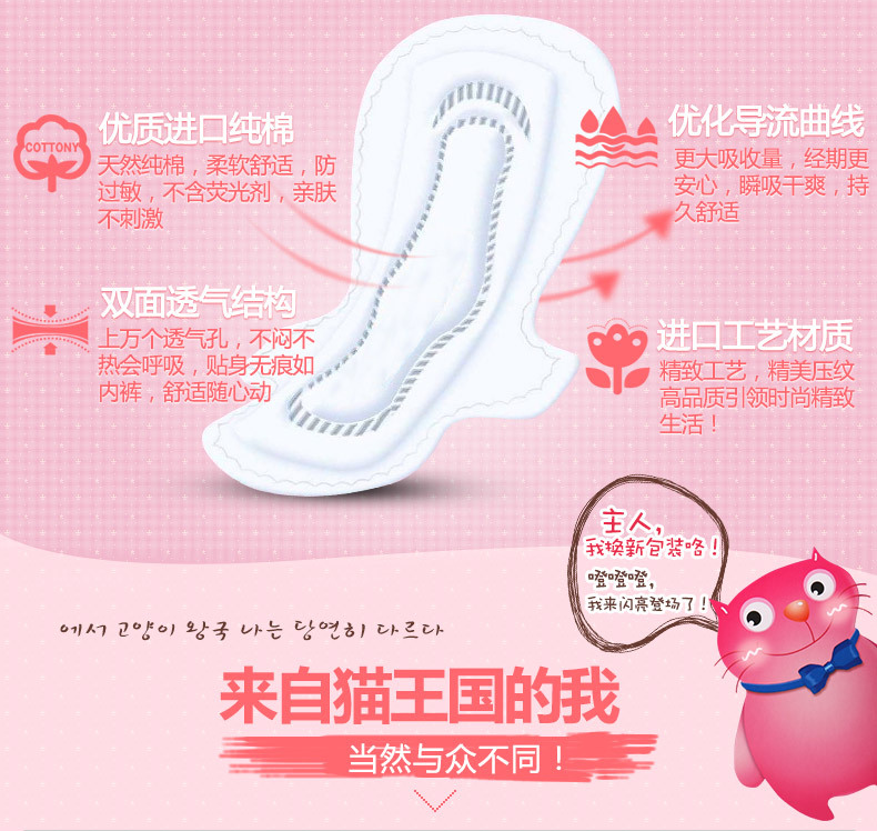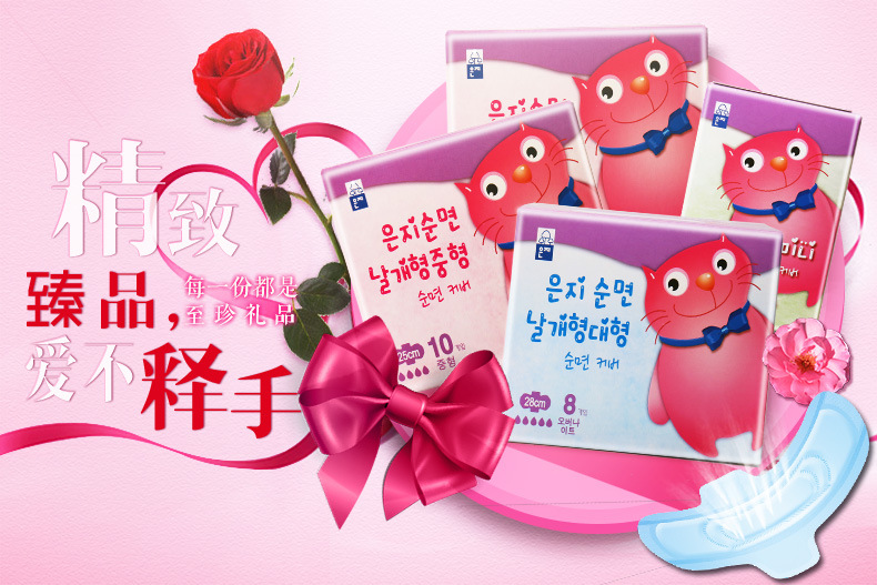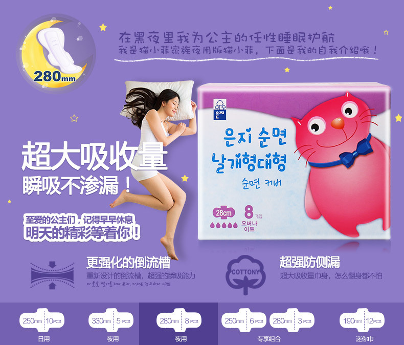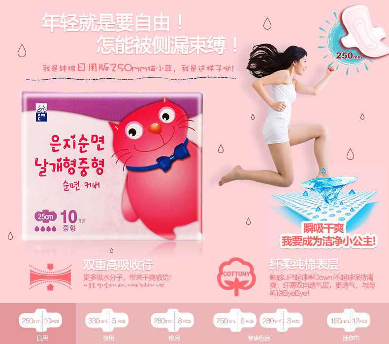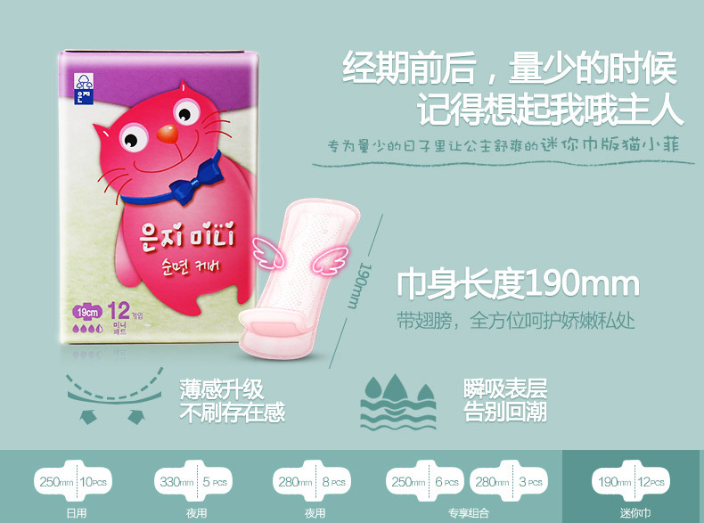 美汇特供:恩芝韩国进口猫小菲迷你巾卫生巾 日用超薄棉柔表层190mm/12片*2包