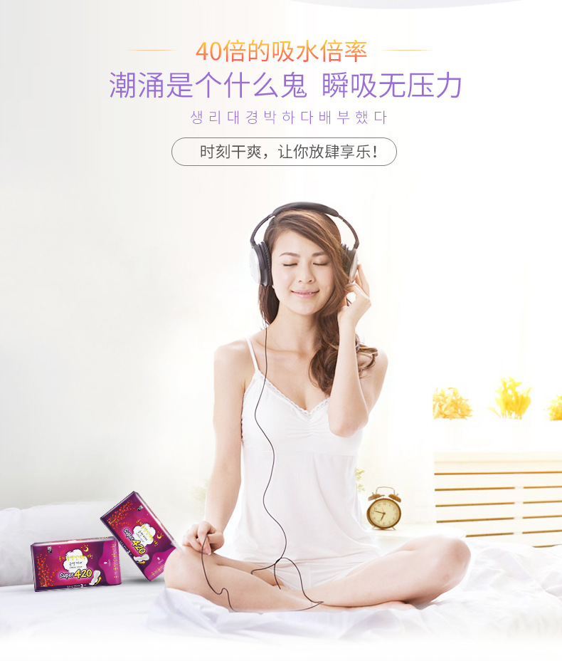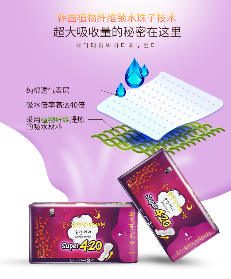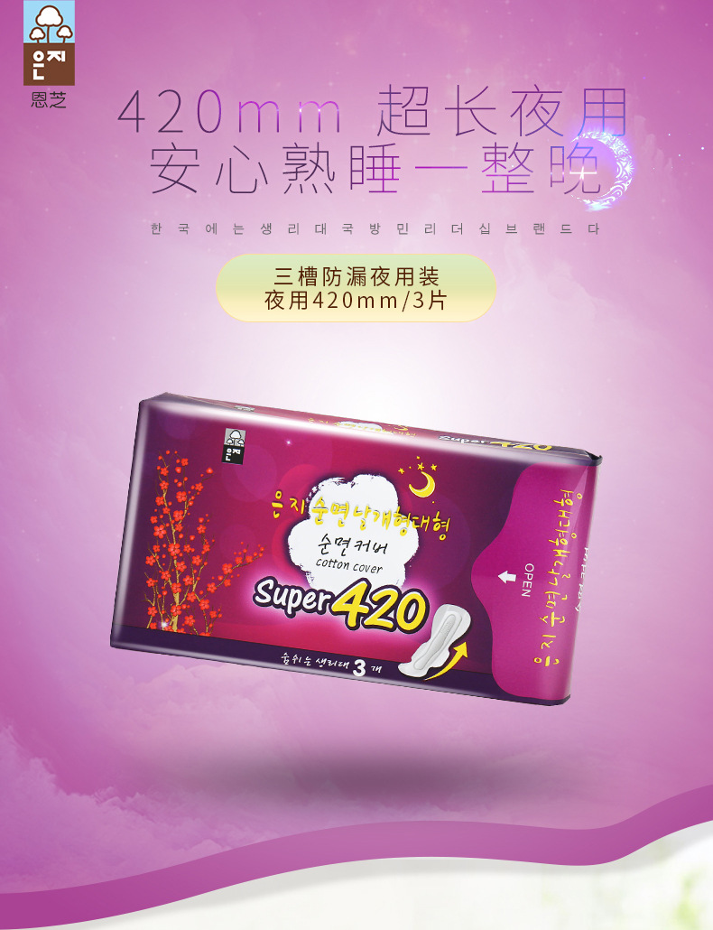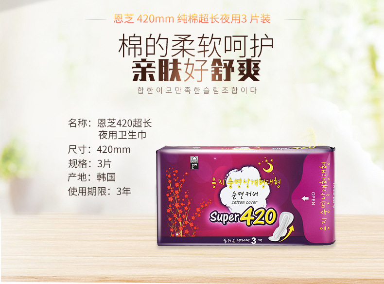 美汇特供:恩芝韩国原装进口超长夜用卫生巾420mm/3片*2包
