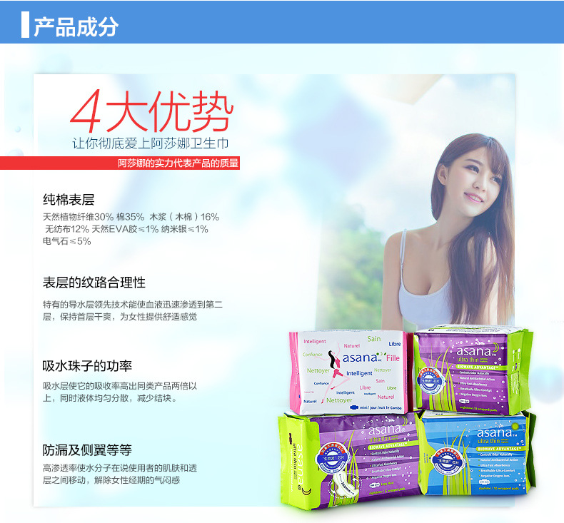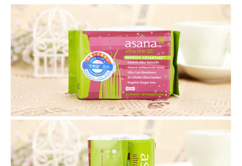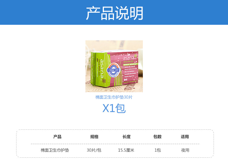 美汇特供:阿莎娜加拿大原装进口卫生巾护垫 超薄棉棉护垫155mm/30片