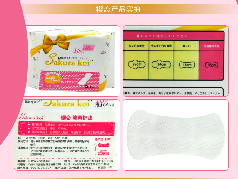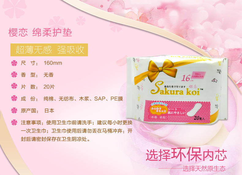 美汇特供:樱恋日本进口卫生巾绵柔抗菌消除异味卫生巾护垫16cm/20片装