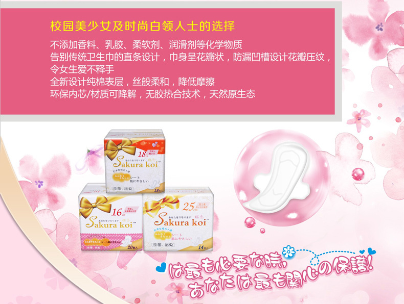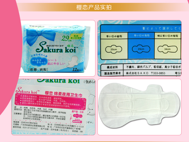 美汇特供:樱恋日本原装进口卫生巾 夜用装姨妈巾290mm/12片