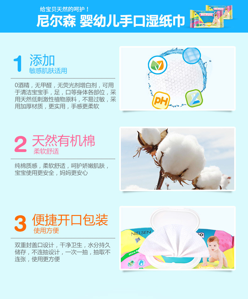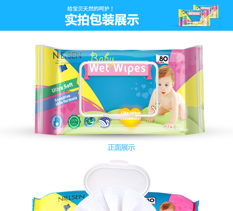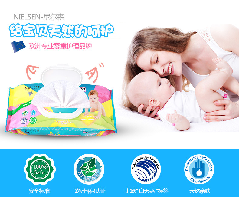 美汇特供:欧洲原装进口尼尔森婴幼儿手口湿纸巾80片(有盖)