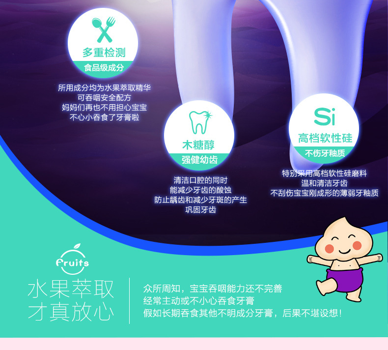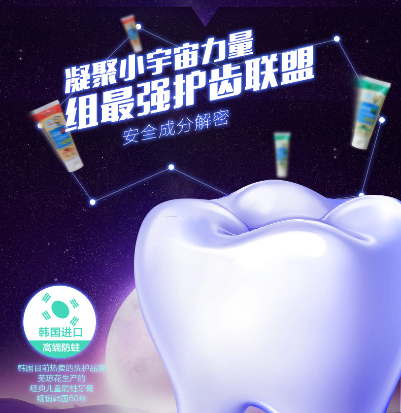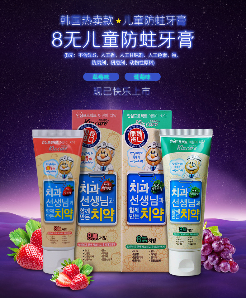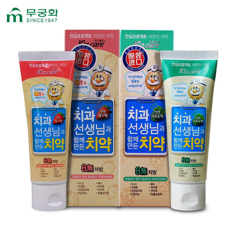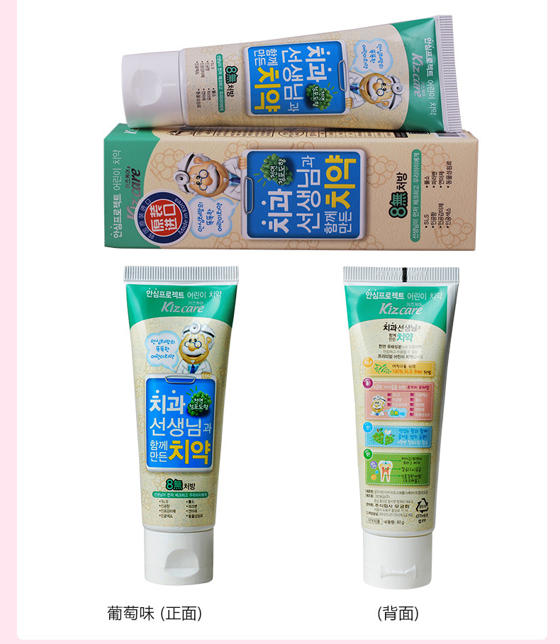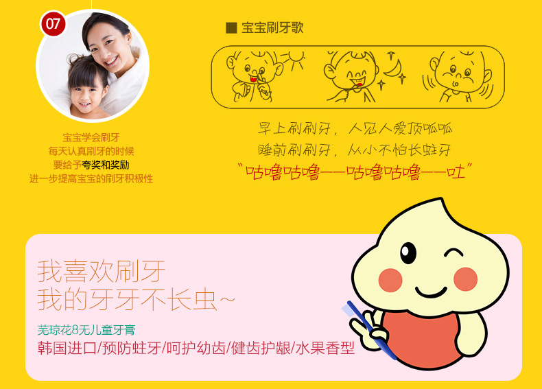 美汇特供:芜琼花韩国进口牙膏 无氟防蛀牙口腔护理8无儿童牙膏80g草莓味