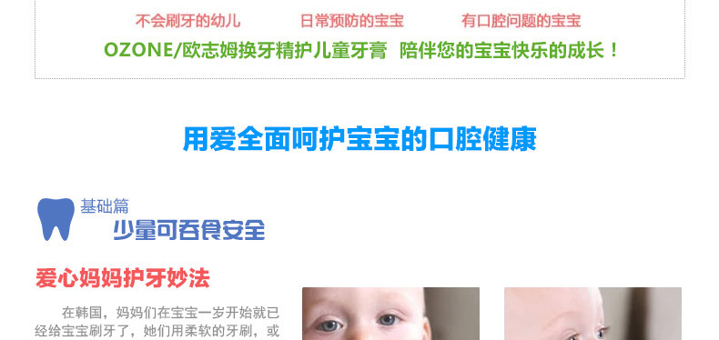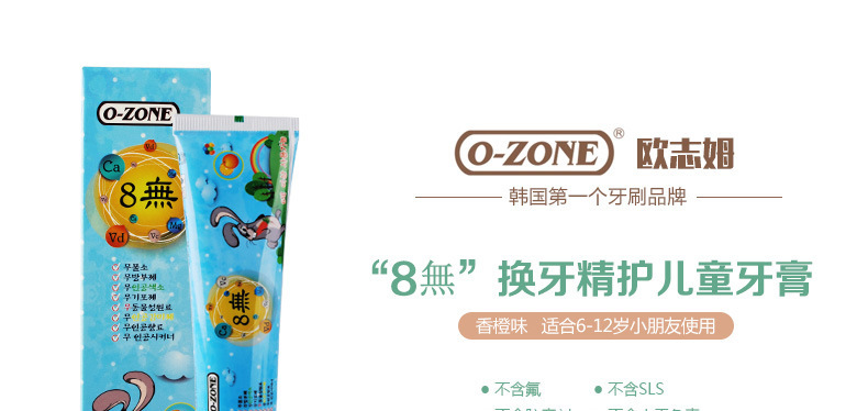 美汇特供:O-ZONE韩国原装进口8无换牙精护儿童牙膏 6岁以上无氟无防腐防蛀