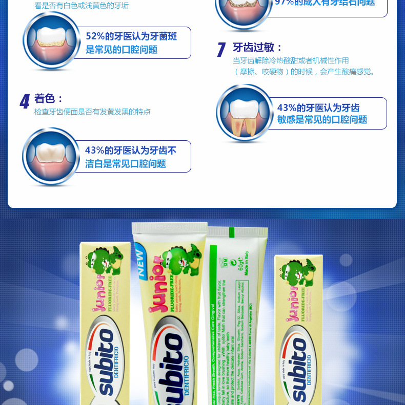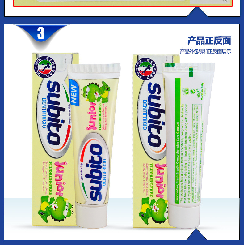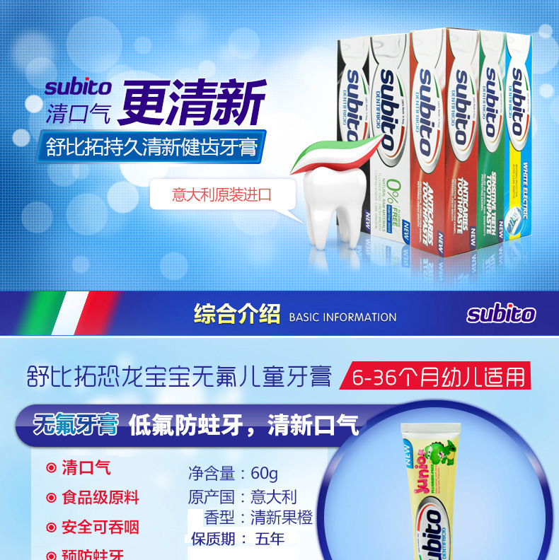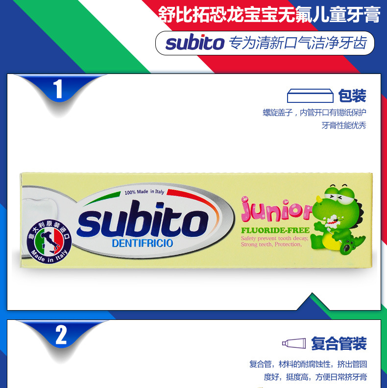 美汇特供:意大利原装进口舒比拓 恐龙宝宝无氟儿童牙膏60g