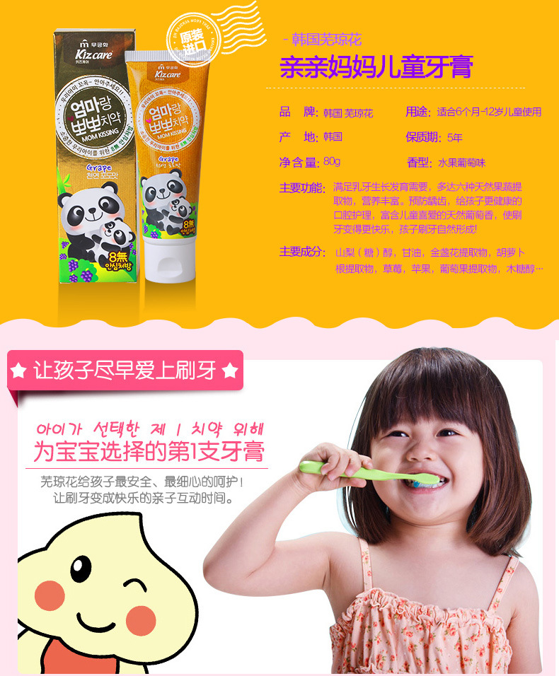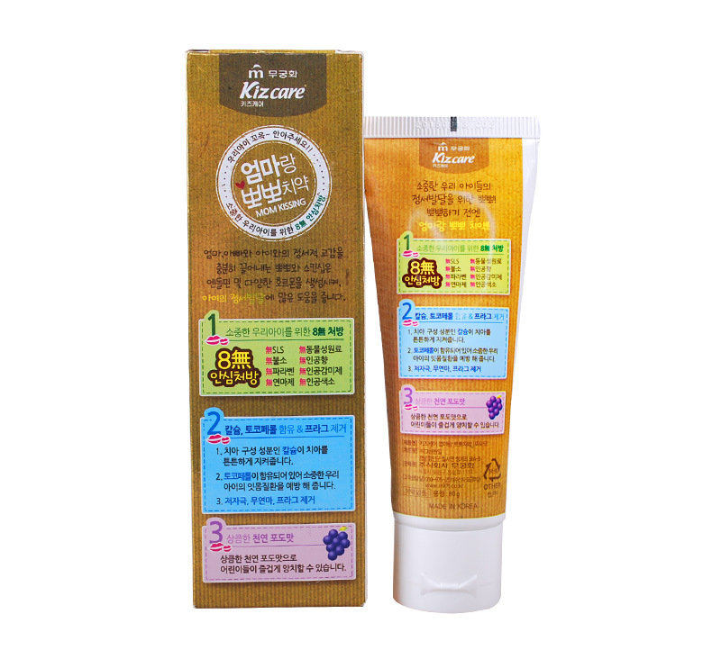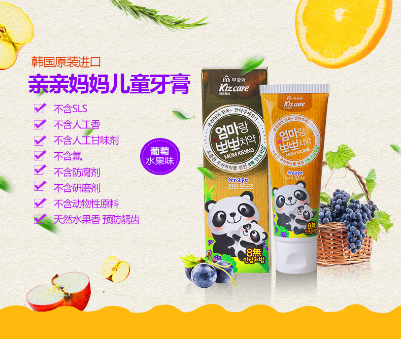 美汇特供:韩国原装进口芜琼花 亲亲妈妈预防蛀牙龋齿儿童牙膏葡萄味80g