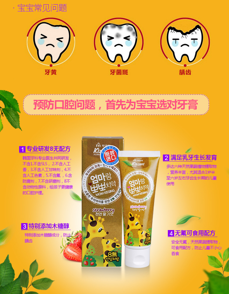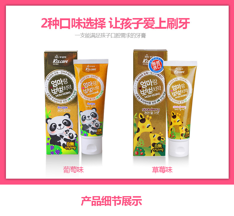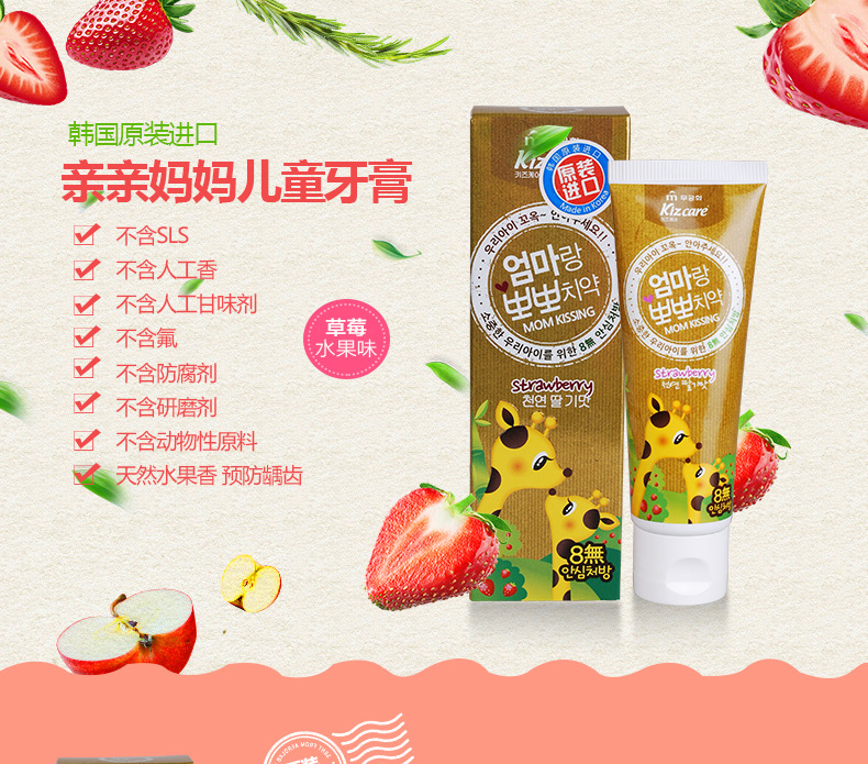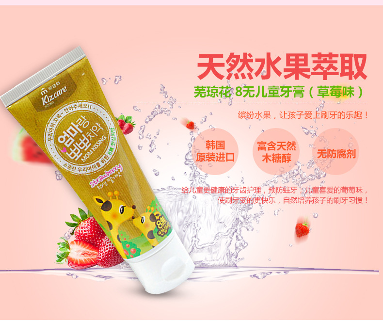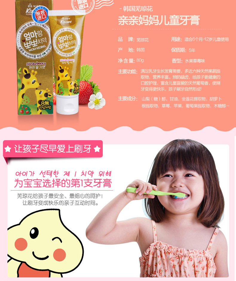美汇特供:韩国原装进口芜琼花牙膏 亲亲妈妈儿童牙膏草莓味80g
