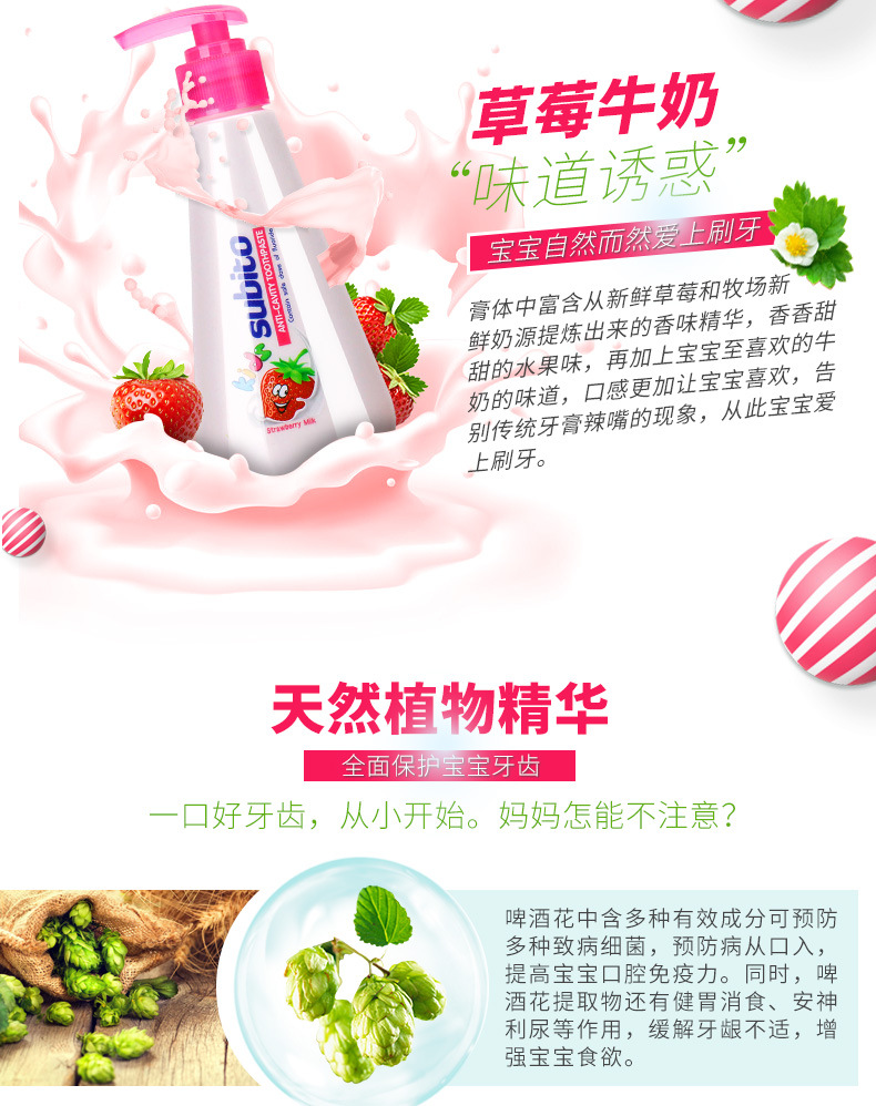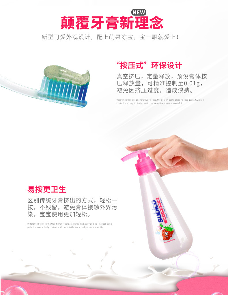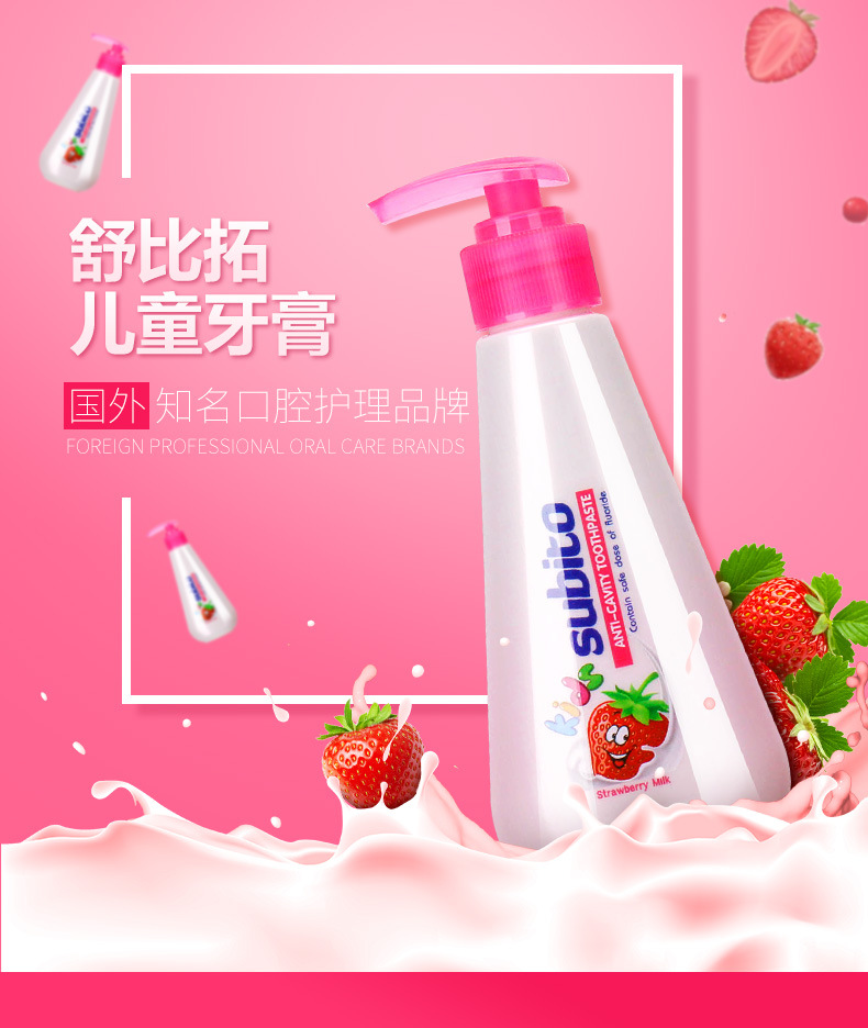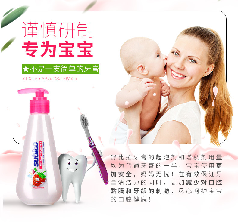 美汇特供:意大利原装进口舒比拓 儿童无氟牙膏草莓牛奶味150g