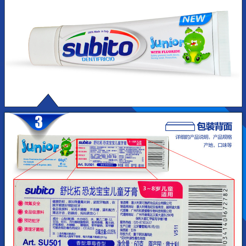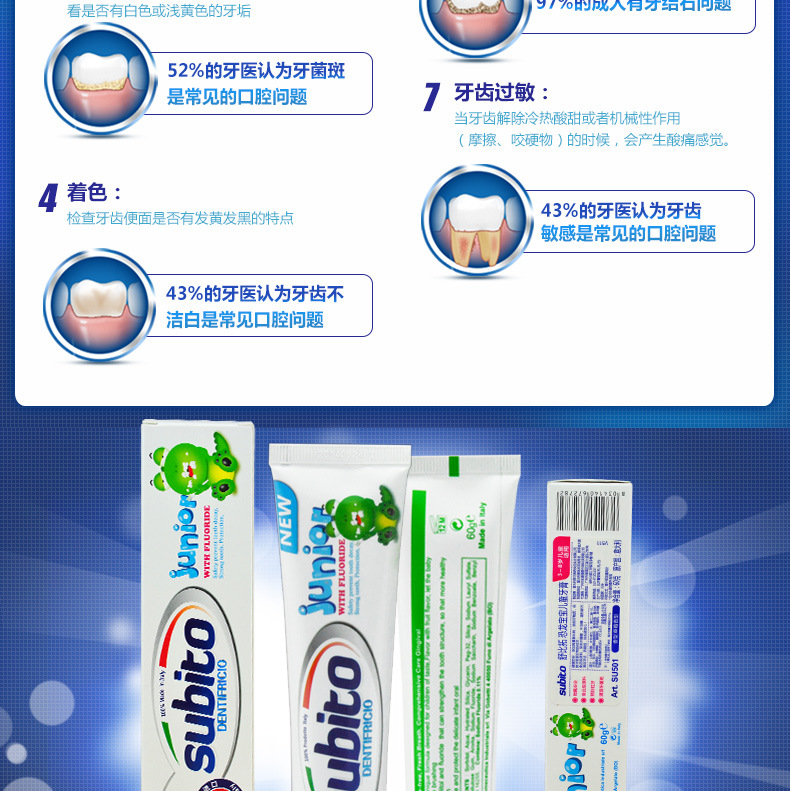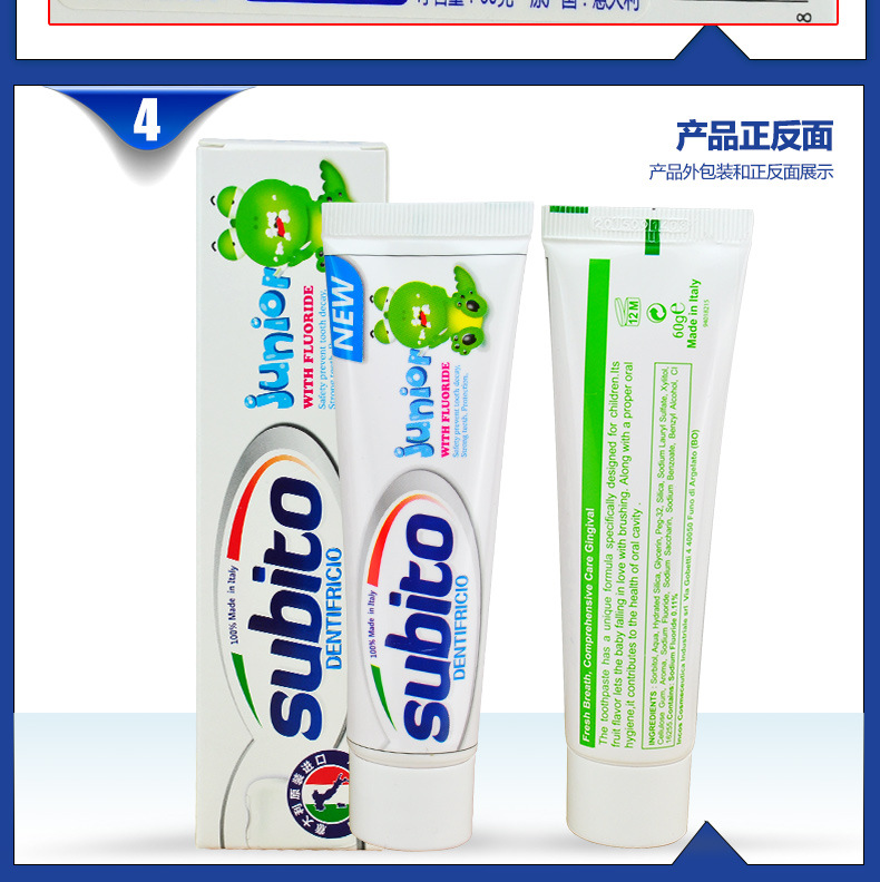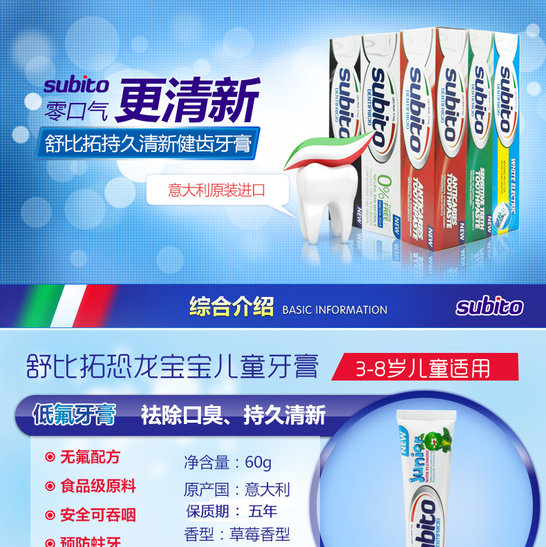美汇特供:意大利原装进口舒比拓 恐龙美白可吞咽儿童牙膏60g