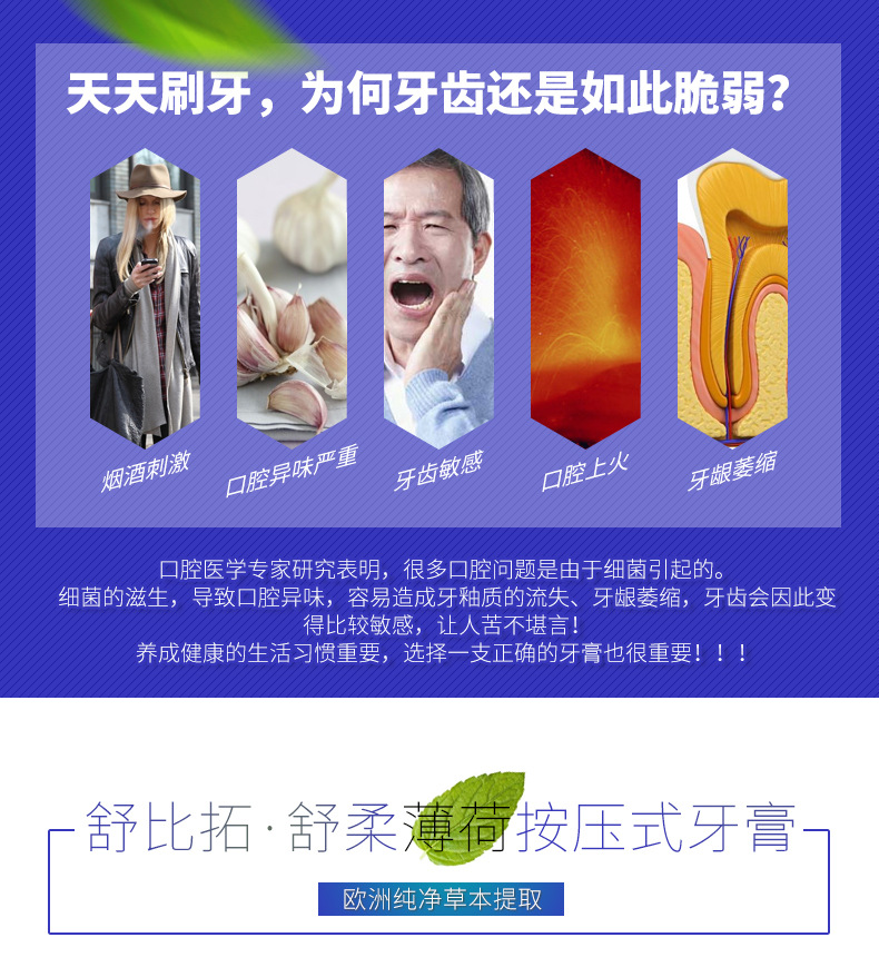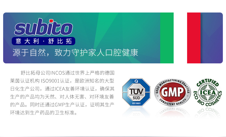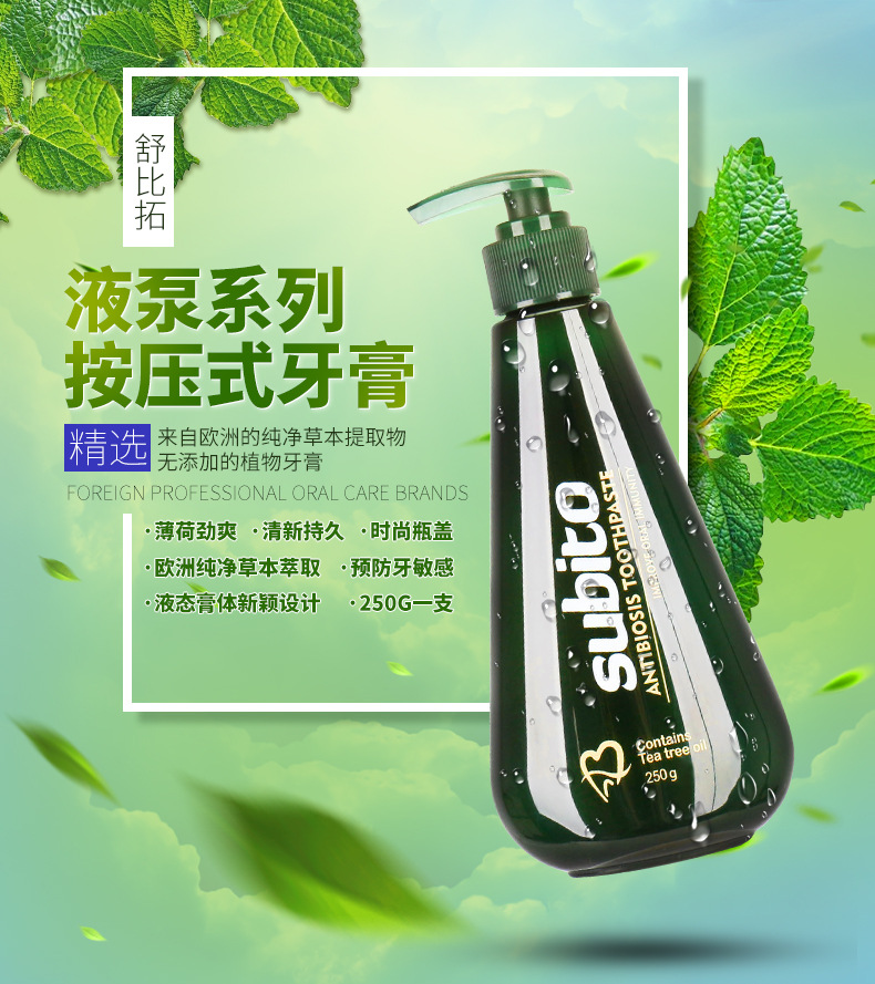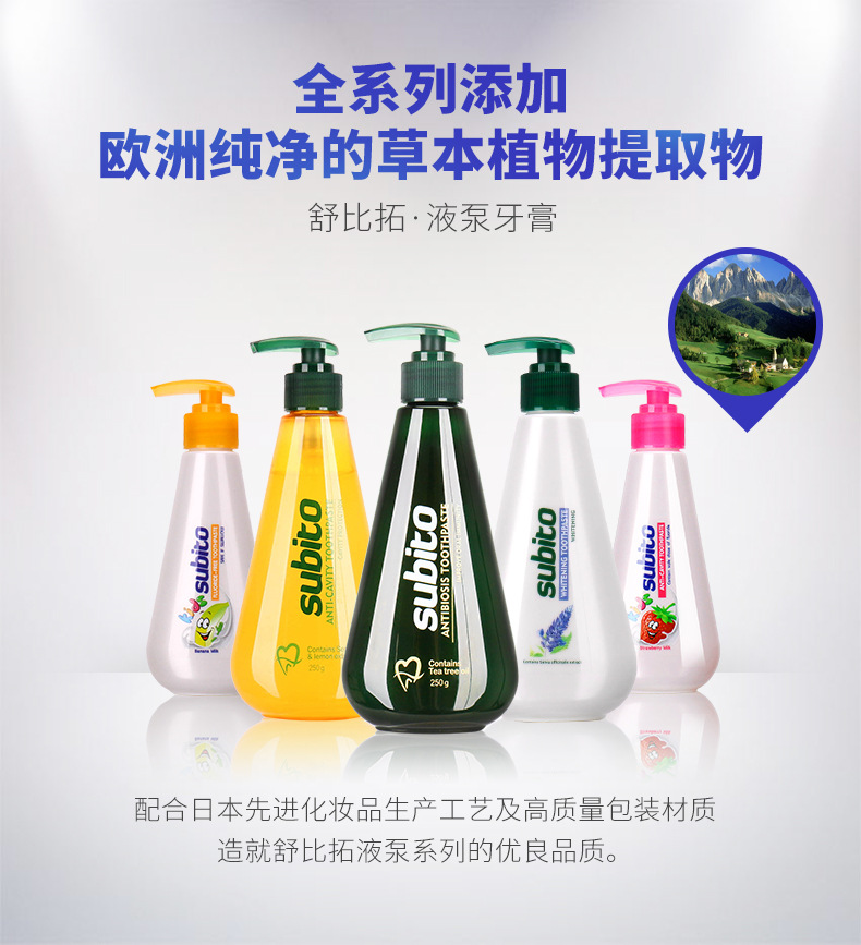 美汇特供:意大利原装进口舒比拓舒柔薄荷按压式美白健齿牙膏250g