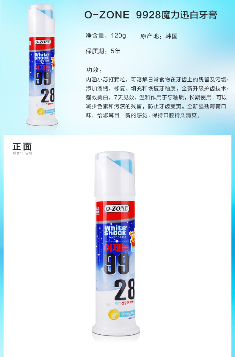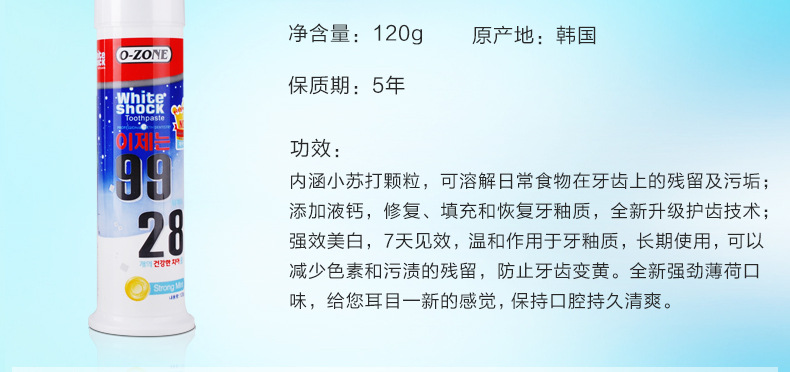 美汇特供:韩国进口欧志姆牙膏 薄荷美白魔力迅白牙膏120g