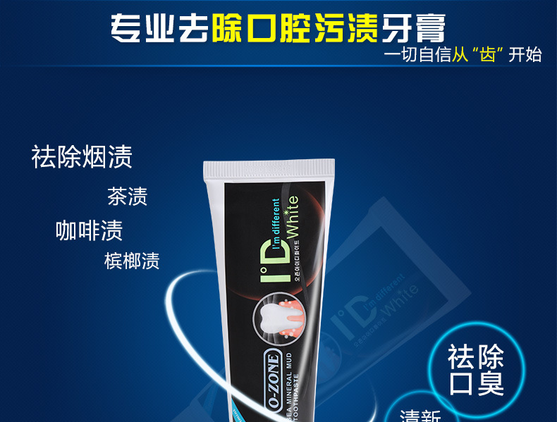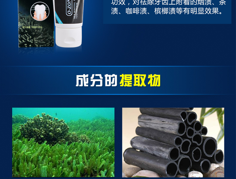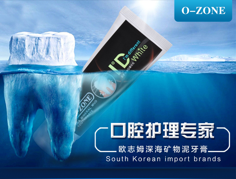 美汇特供:韩国原装进口O-ZONE深海矿物泥牙膏100g 去渍烟渍除口臭美白牙膏