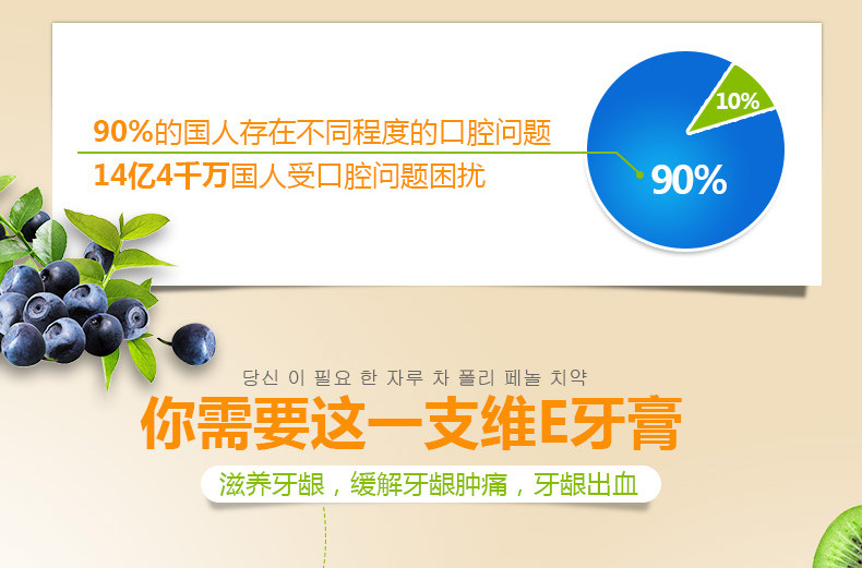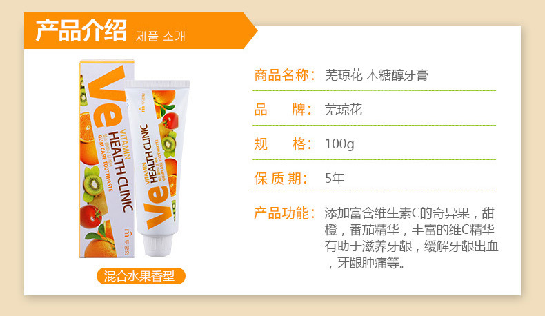 美汇特供:韩国原装进口芜琼花木糖醇牙膏(混合水果味)100g