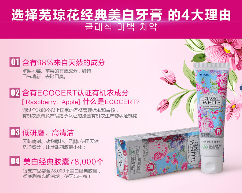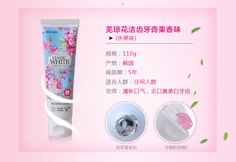 美汇特供:韩国原装进口芜琼花经典去黄果香洁齿牙膏110g 亮白去牙结石清新口气