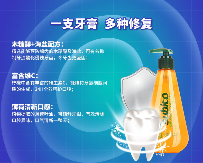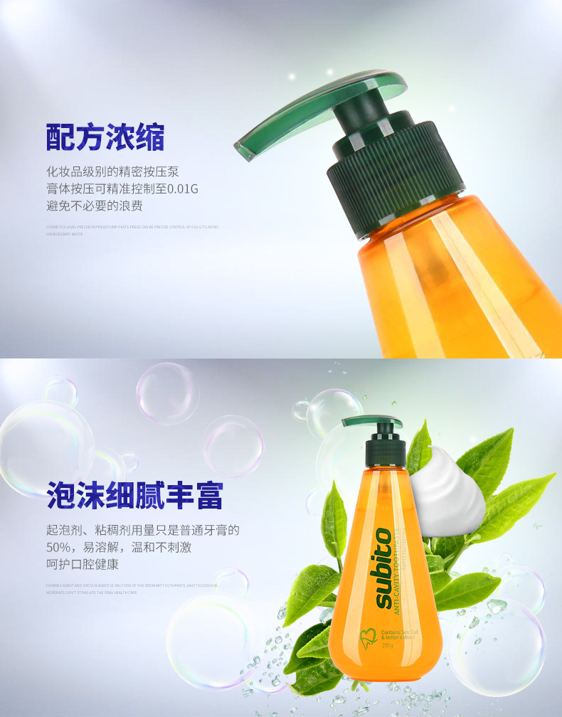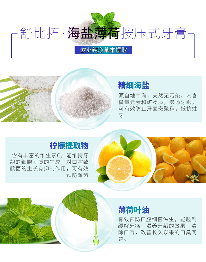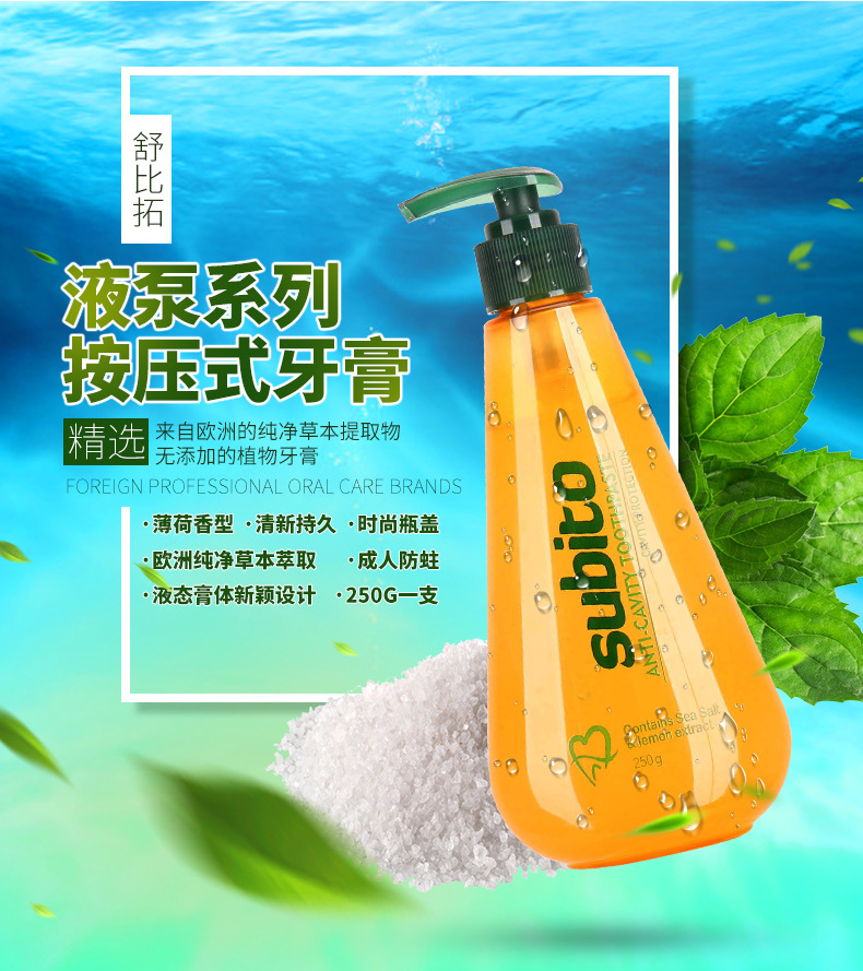 美汇特供:意大利原装进口舒比拓海盐薄荷按压式牙膏250g美白清新口气