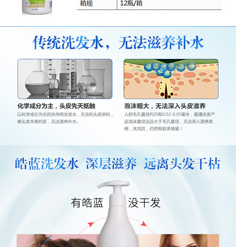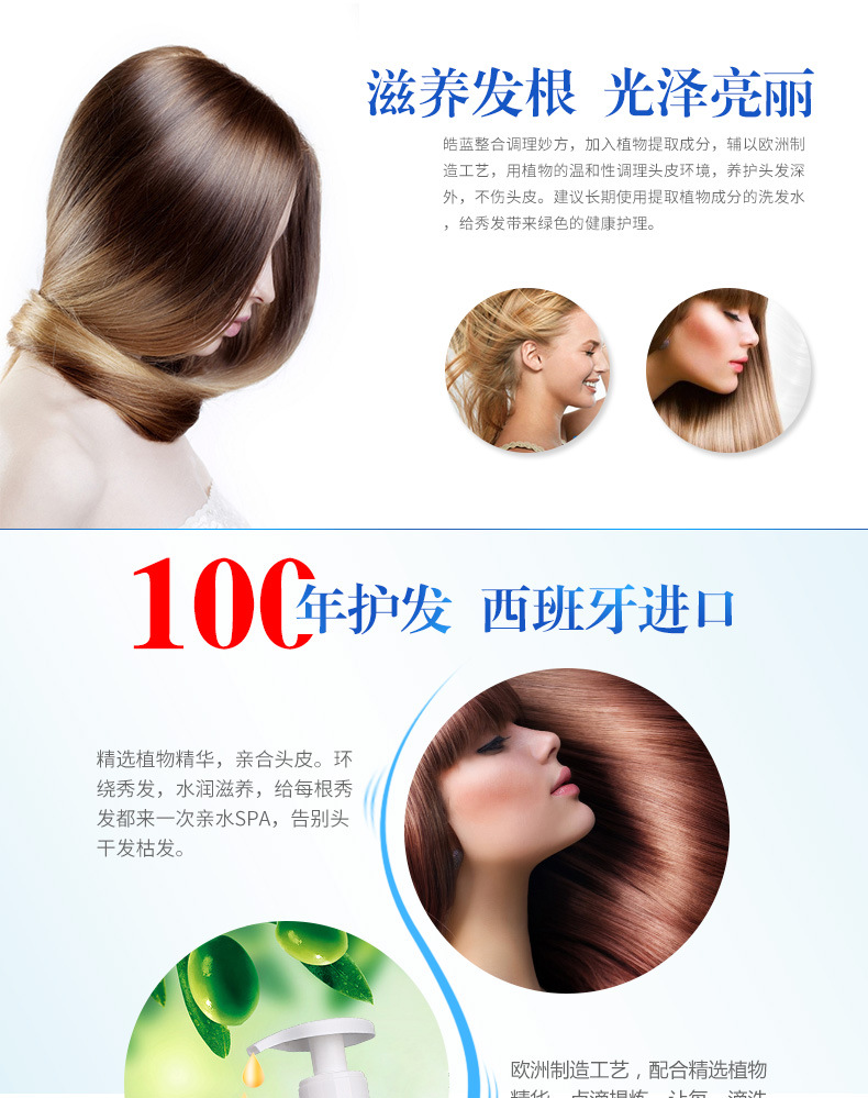 美汇特供:皓蓝西班牙原装进口滋养修复洗发露洗发水500ml