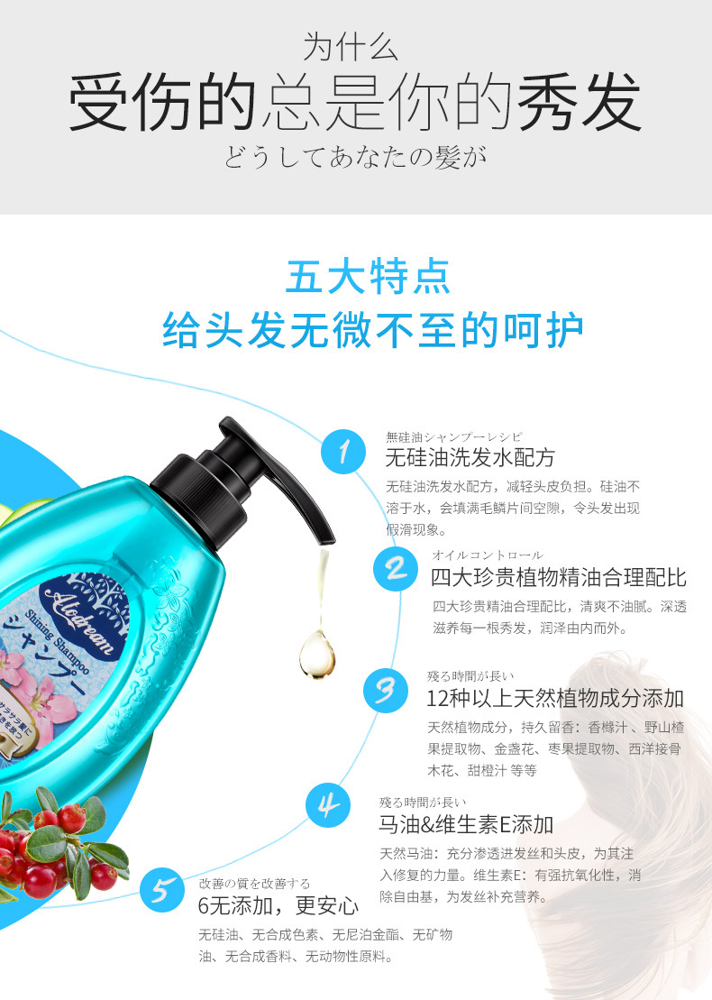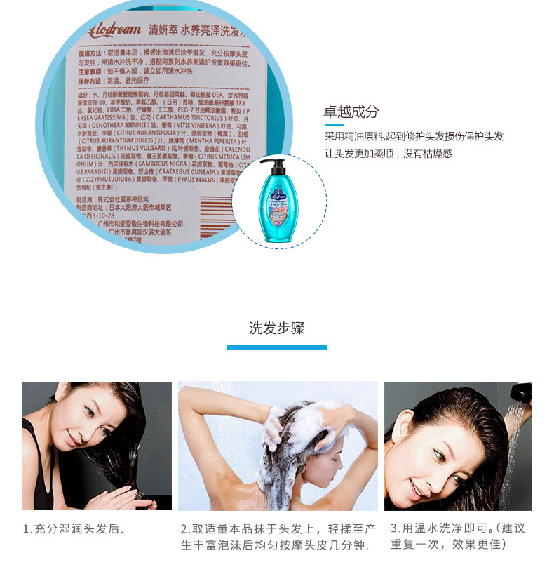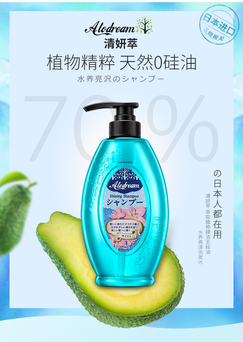 美汇特供:日本原装进口清妍萃马油水养亮泽无硅油洗发水500ML