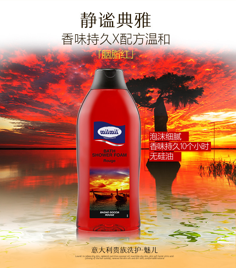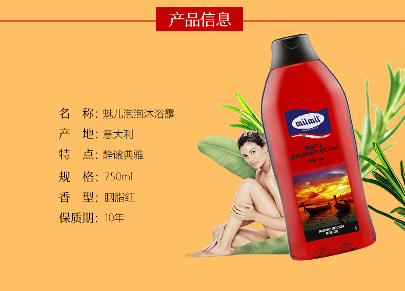 美汇特供:意大利原装进口魅儿泡泡沐浴露胭脂红750ml 持久留香