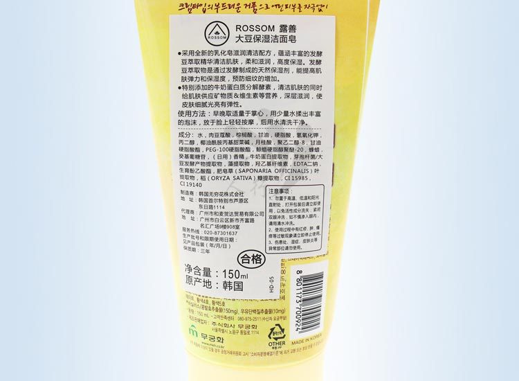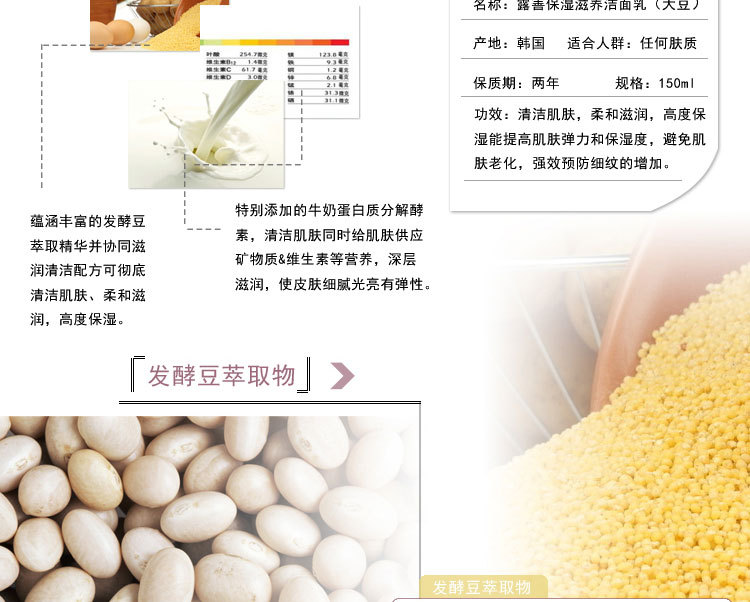 美汇特供:韩国原装进口露善大豆保湿洗面奶150ml