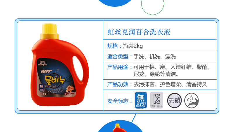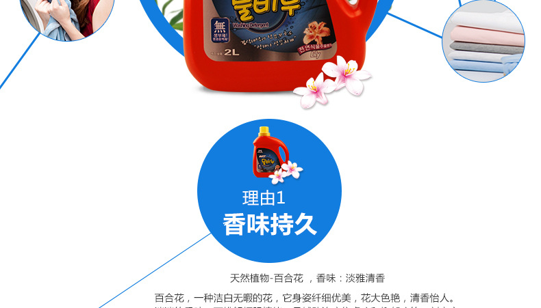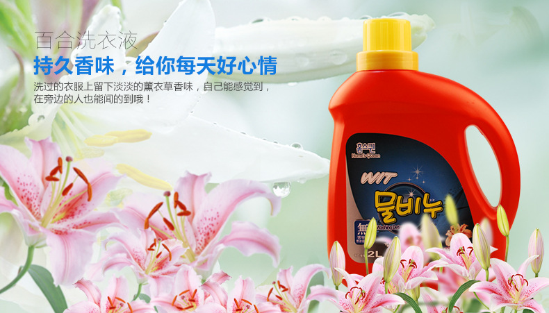 美汇特供:韩国原装进口 虹丝克润百合花波轮洗衣液2L