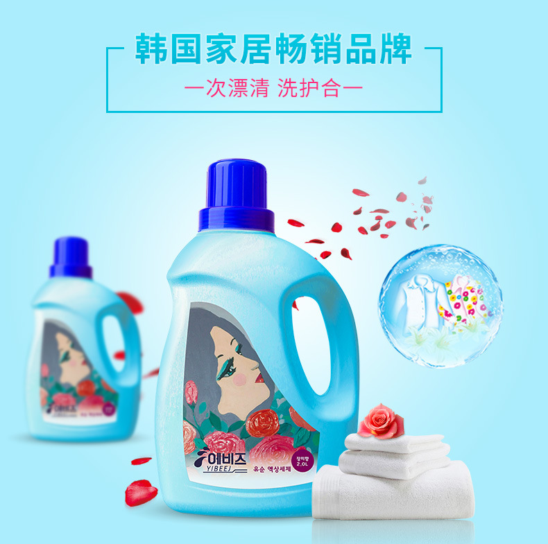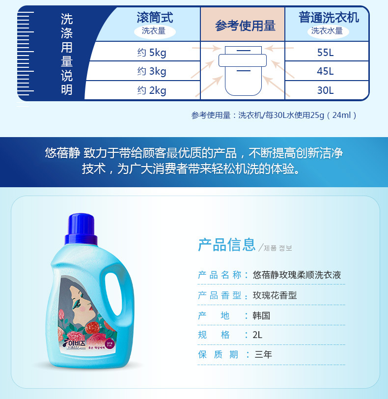 美汇特供:韩国原装进口悠蓓静滚筒专用玫瑰柔顺洗衣液2L