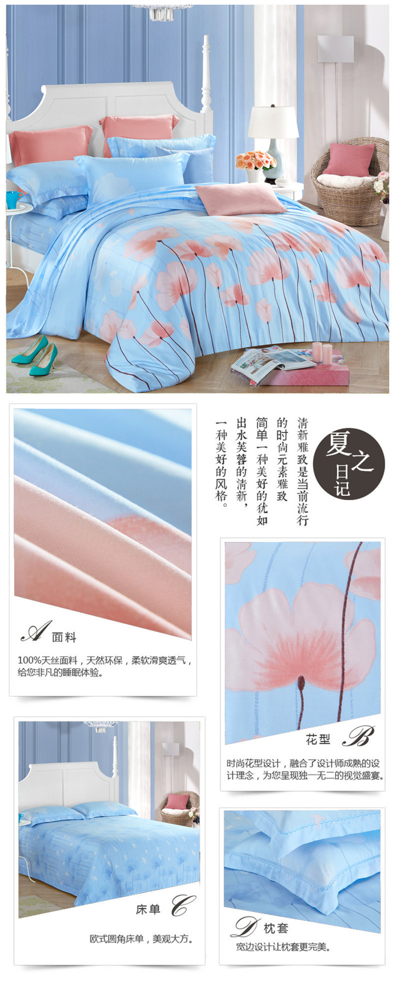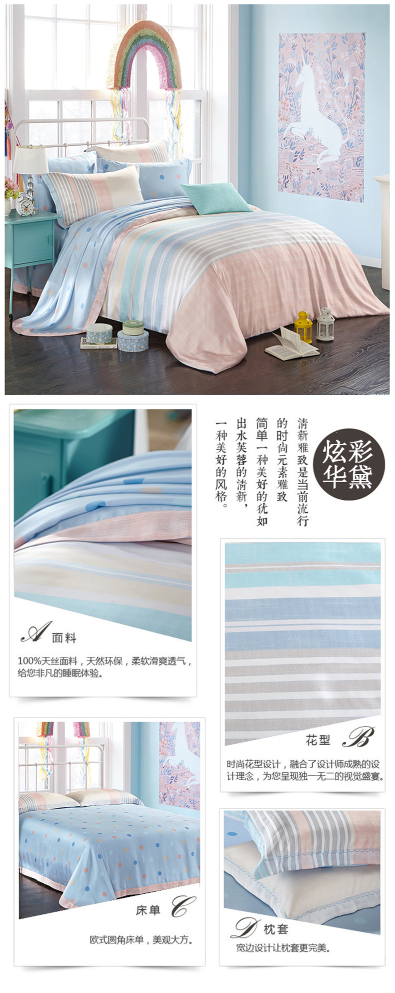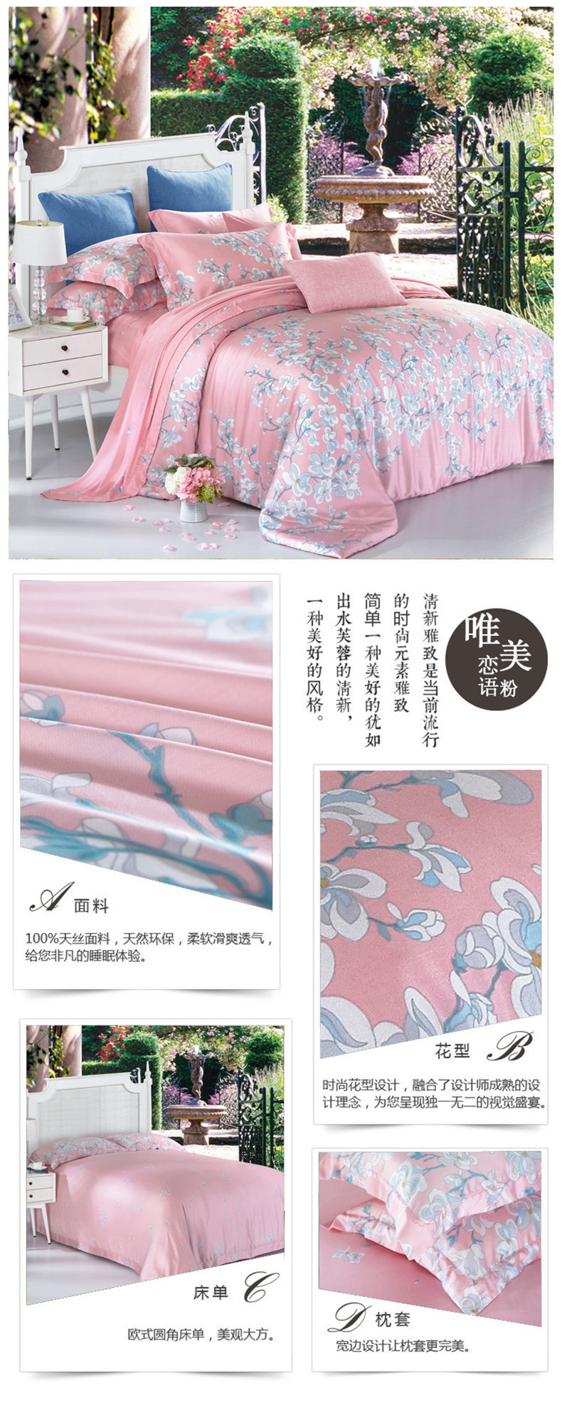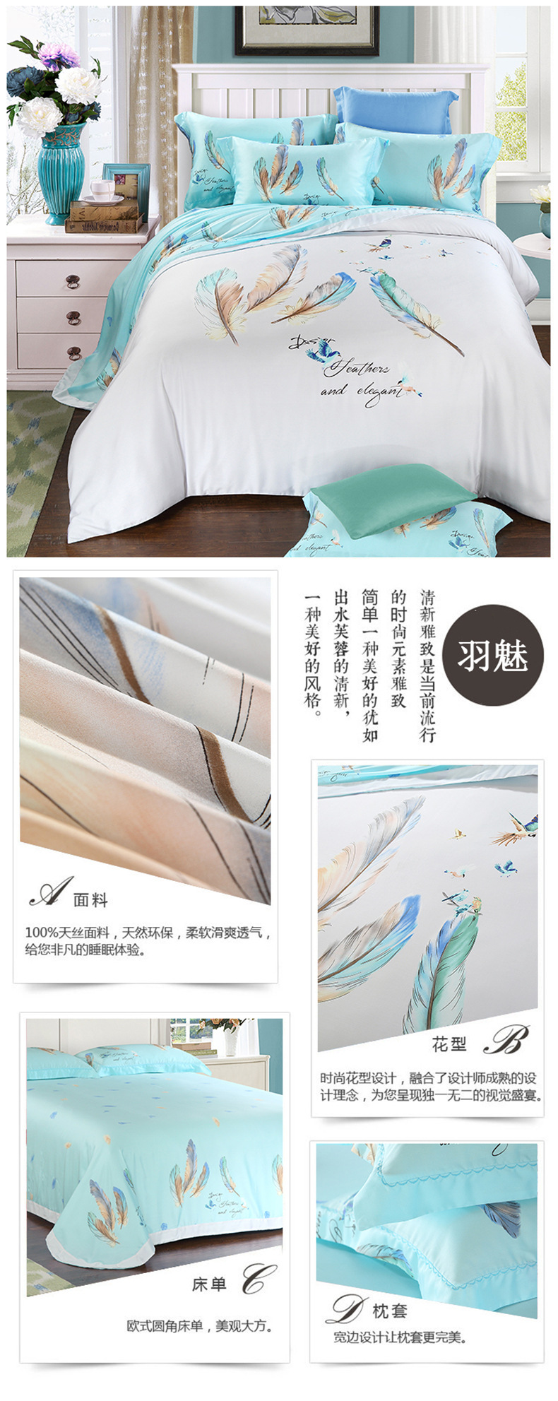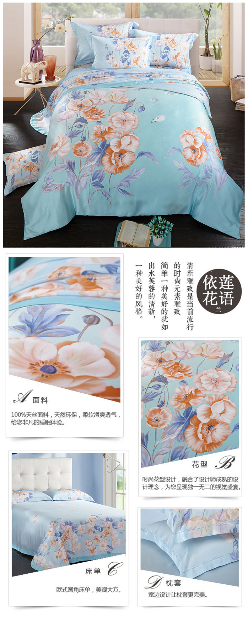 美汇特供:2017夏季新款床上用品进口双面天丝四件套40支被套床笠四件套