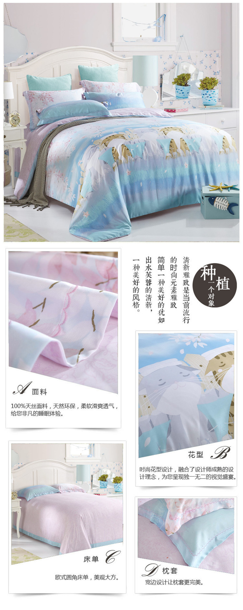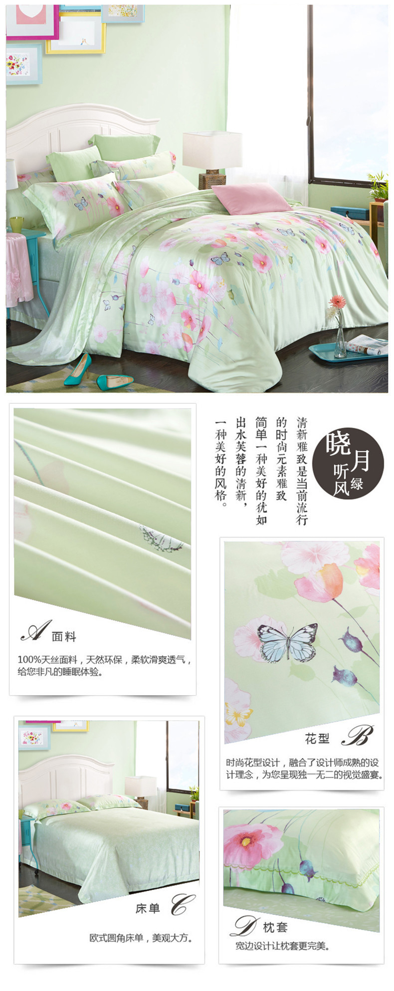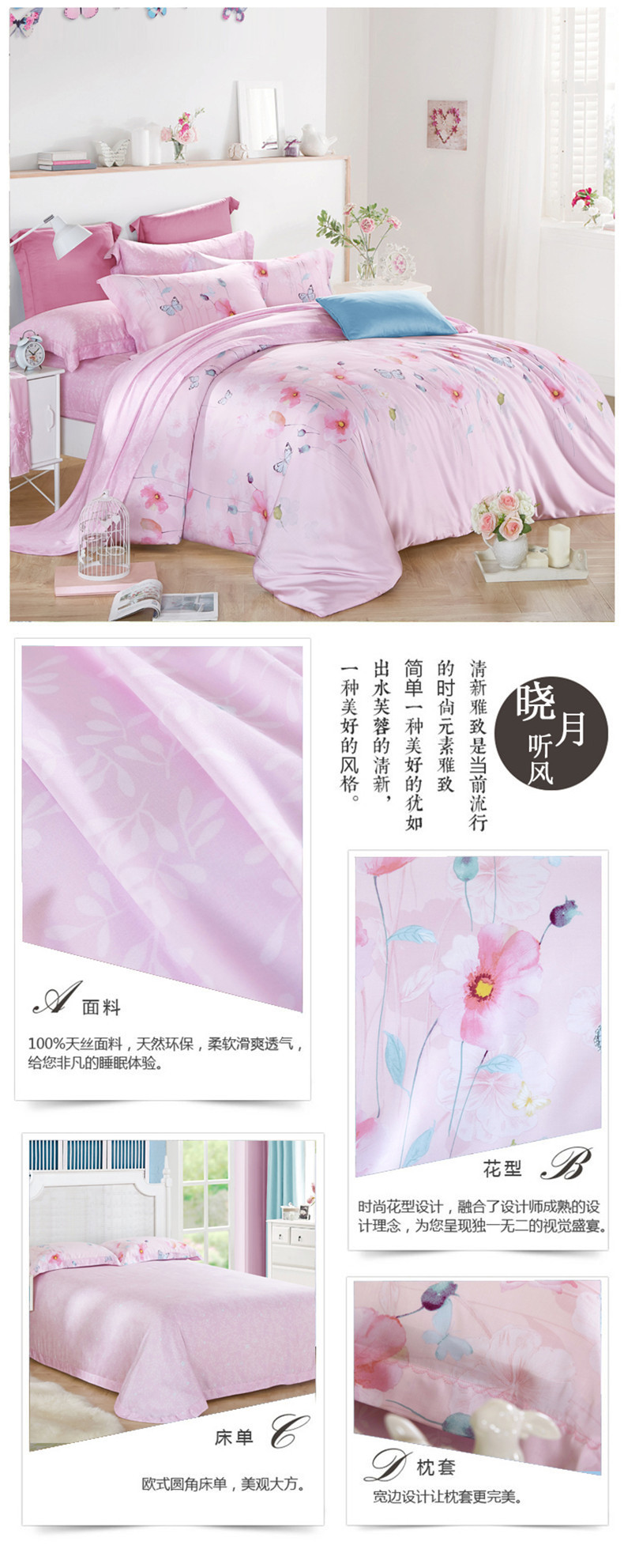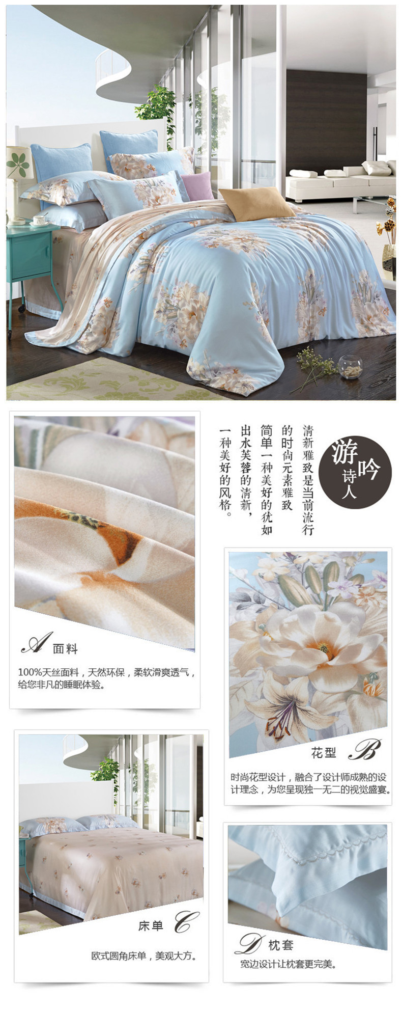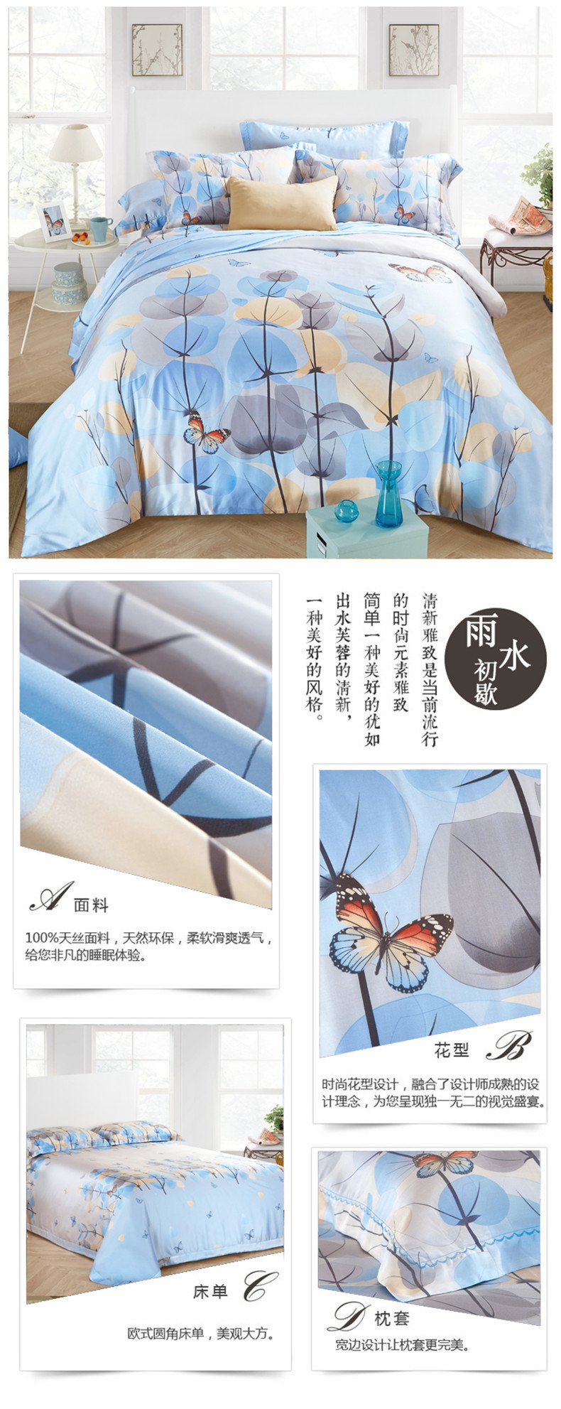 美汇特供:2017夏季新款床上用品进口双面天丝四件套40支被套床笠四件套