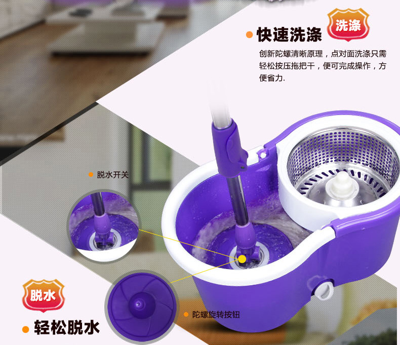 美汇特供:百家好世拖把桶双驱动迷你旋转拖把拖把桶不锈钢拖把