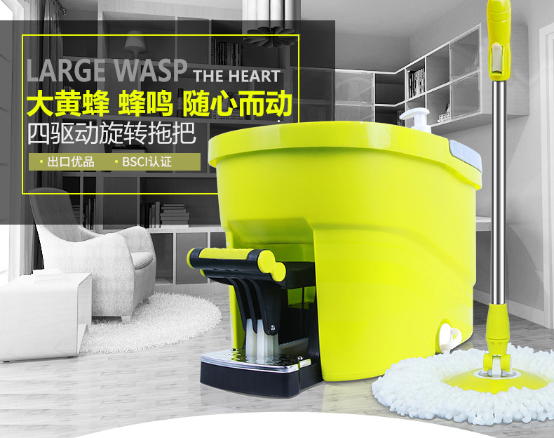 美汇特供:百家好世大黄蜂拖把桶四驱动自动旋转手压脚踩旋转拖把桶