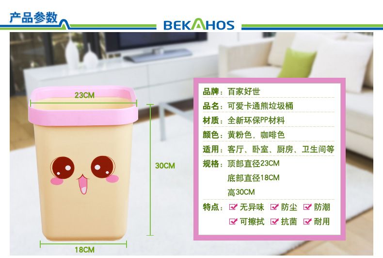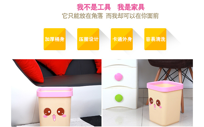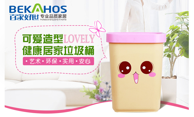 美汇特供:百家好世大号厨房卡通创意塑料筒垃圾桶卫生间家用环保无盖垃圾桶