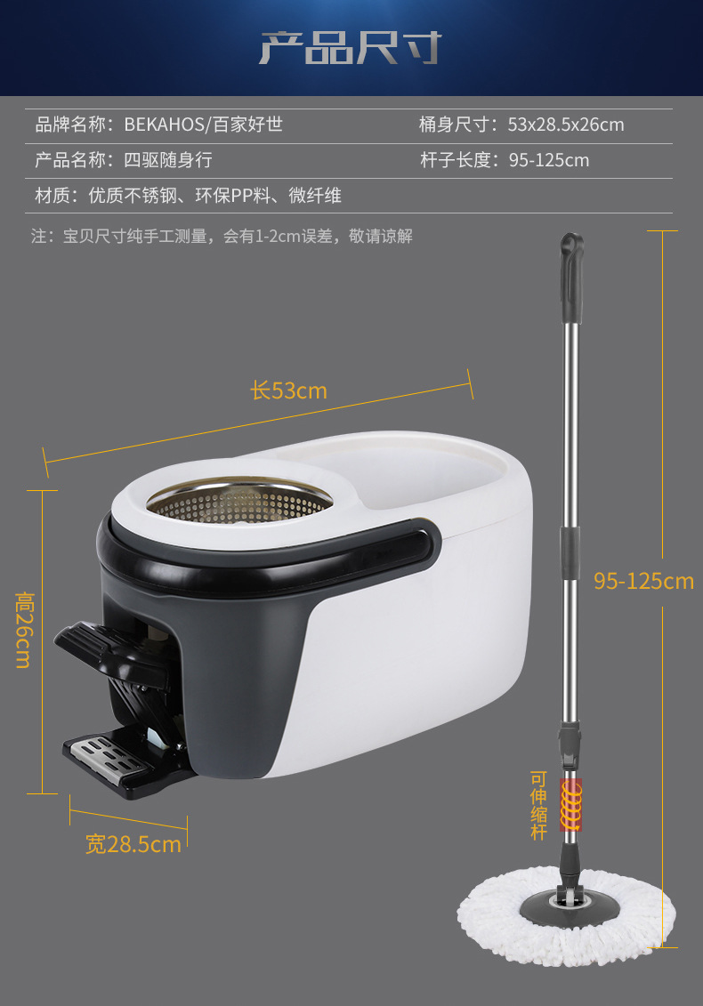 美汇特供:百家好世科技桶四驱拖把桶旋转墩布桶带脚踏拖布