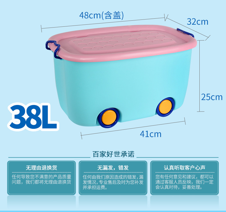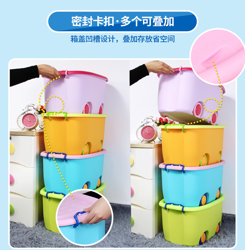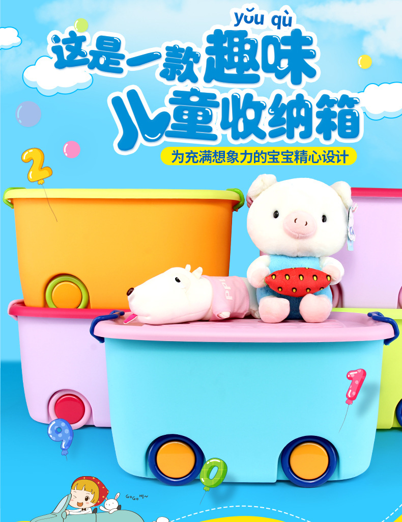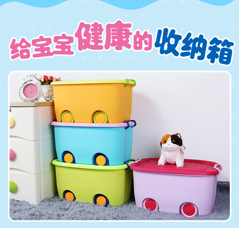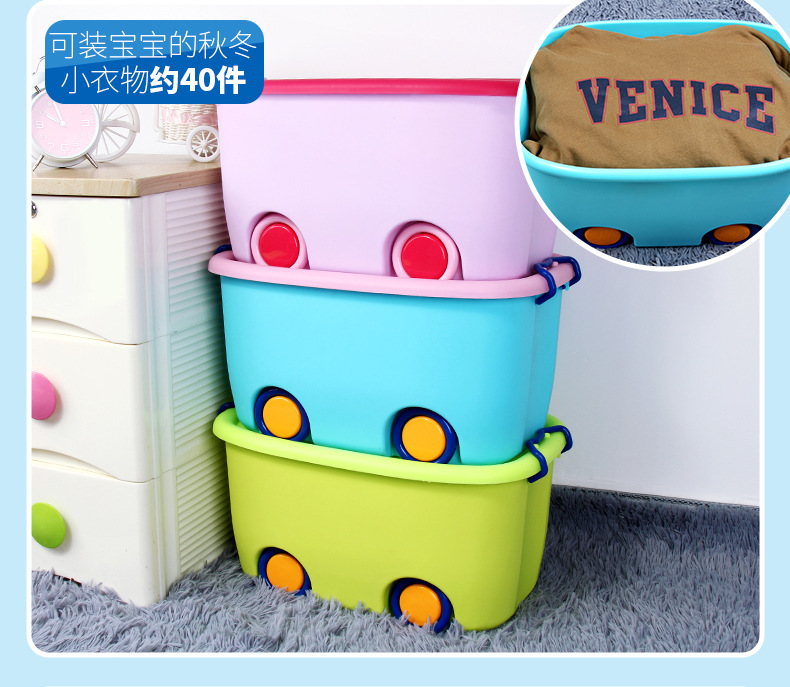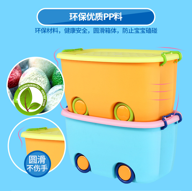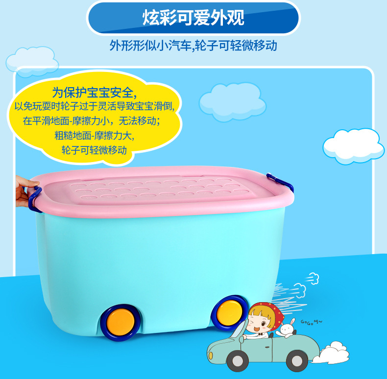 美汇特供:百家好世儿童大号收纳箱带轮塑料玩具整理有盖儿童衣服整理