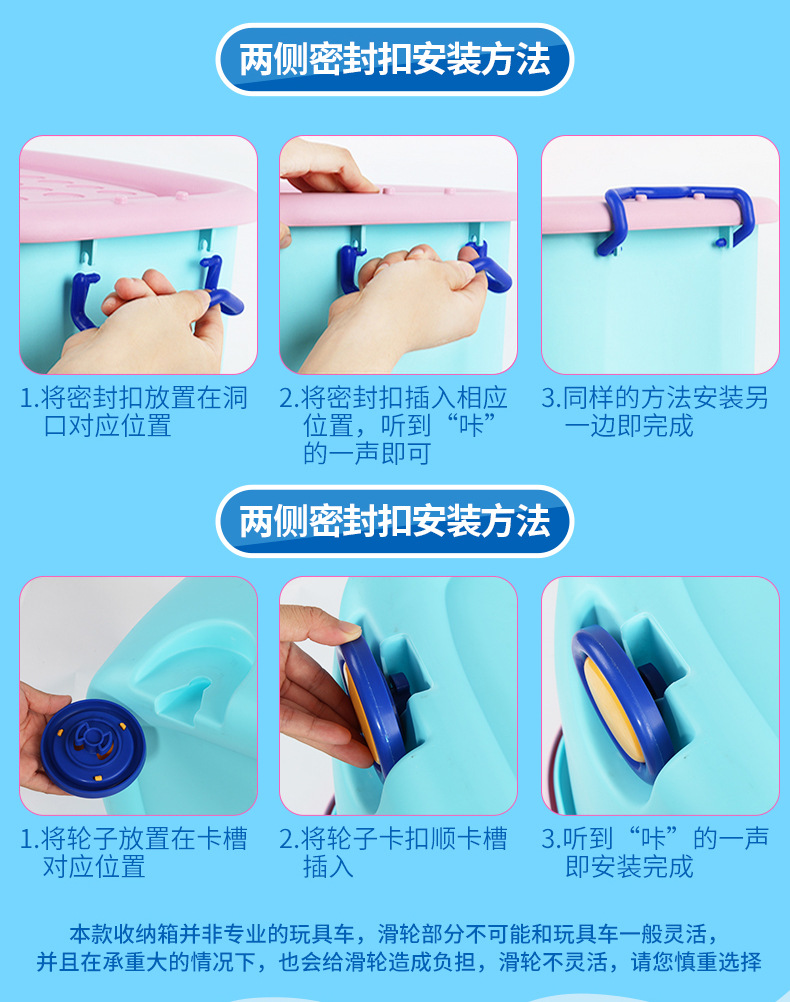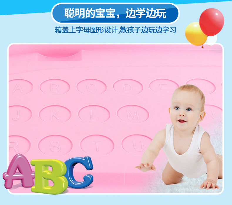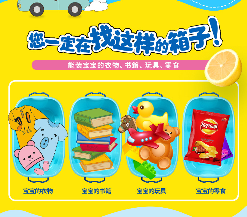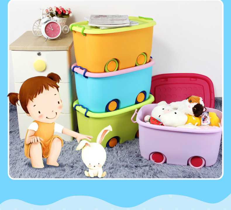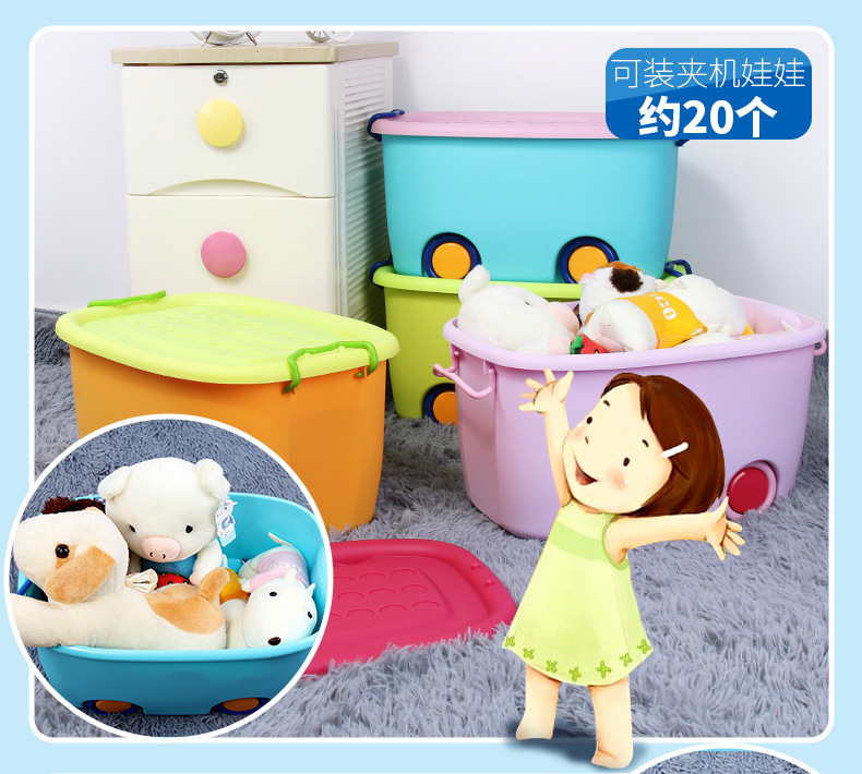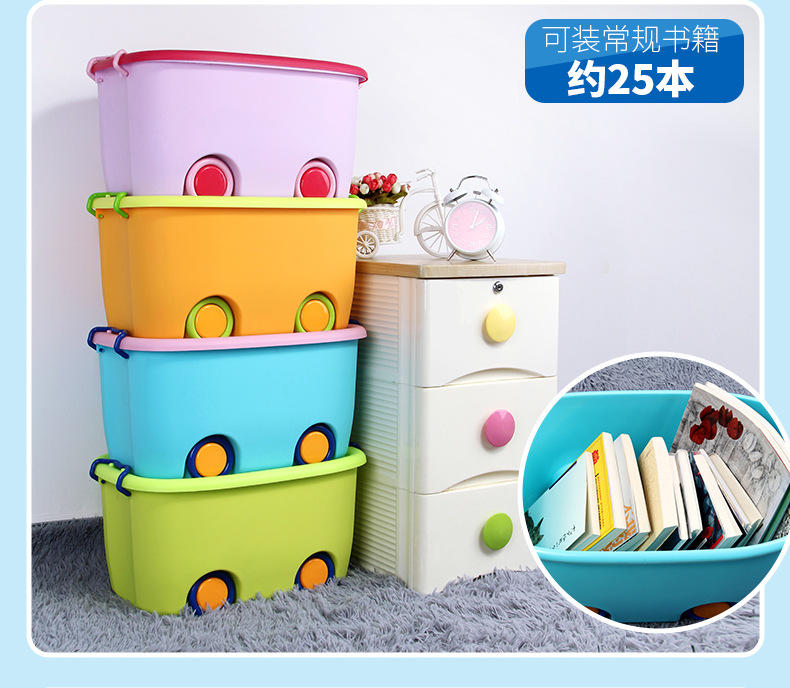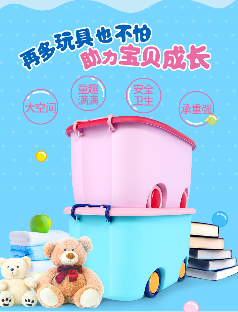 美汇特供:百家好世儿童大号收纳箱带轮塑料玩具整理有盖儿童衣服整理