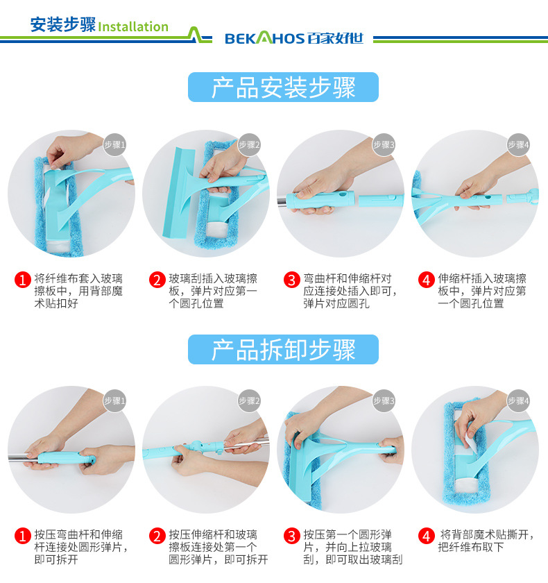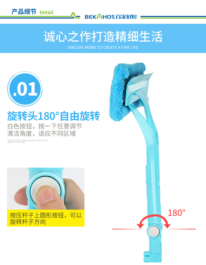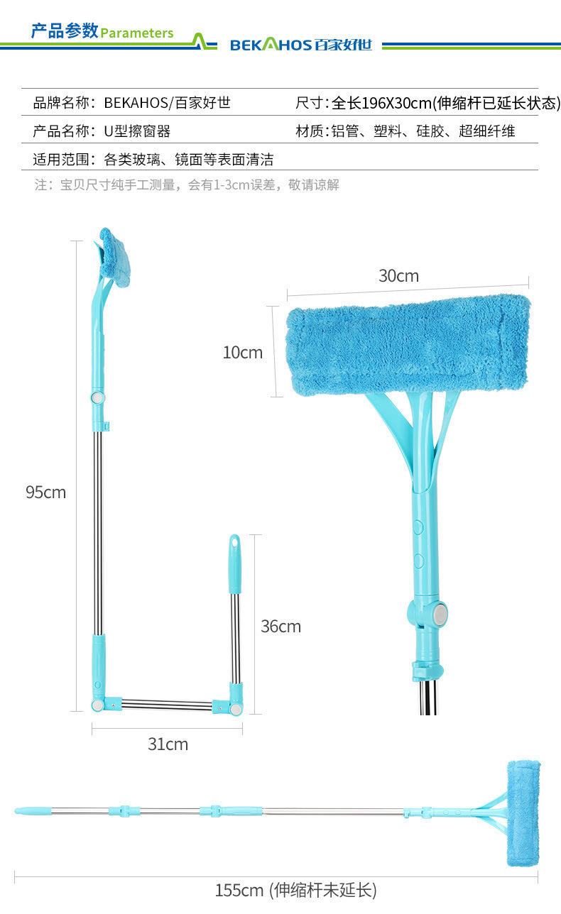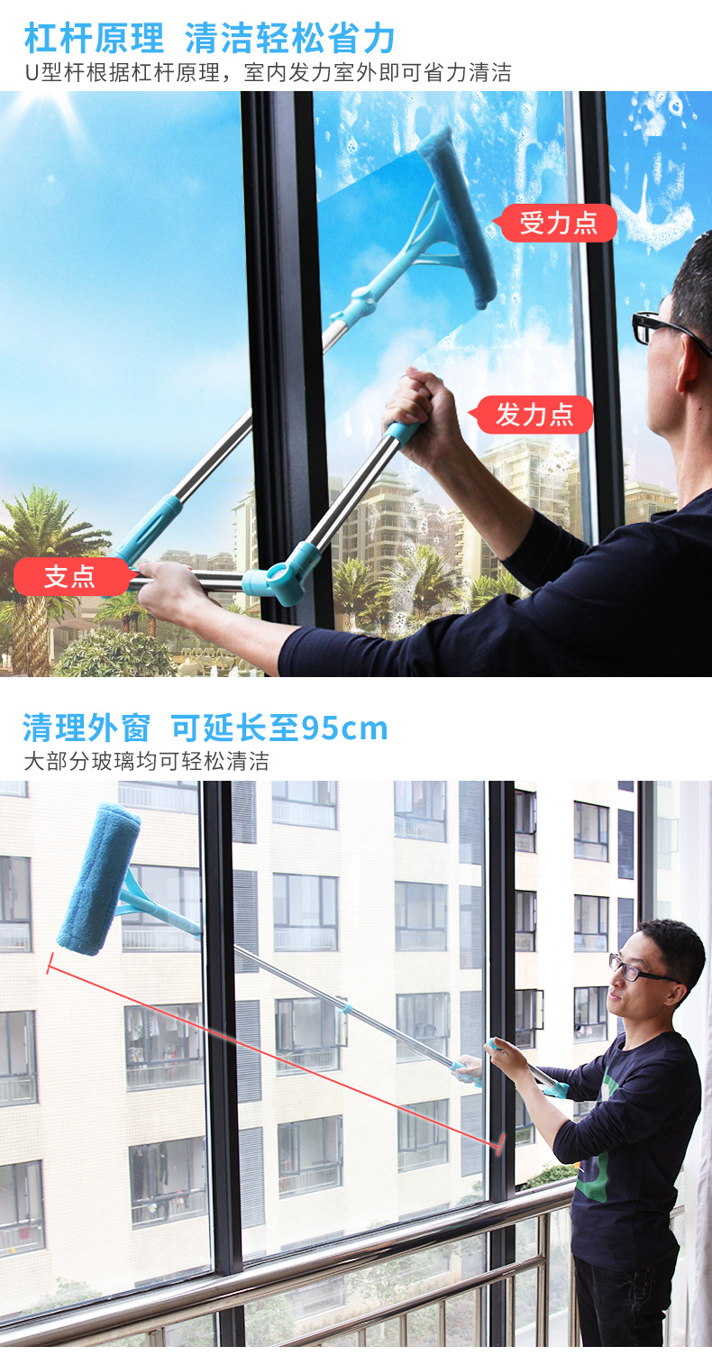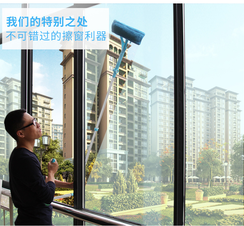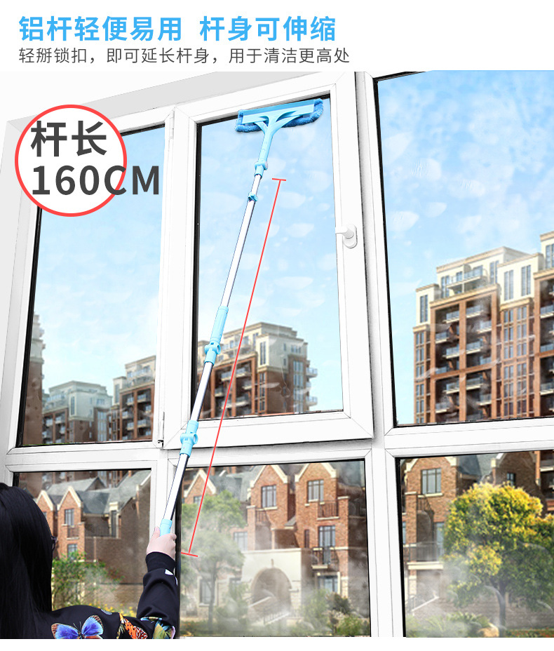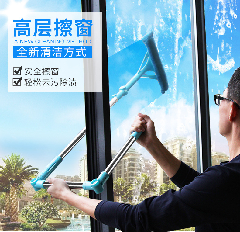 美汇特供:百家好世伸缩杆玻璃清洁器双面擦玻璃擦刮玻璃器擦窗工具