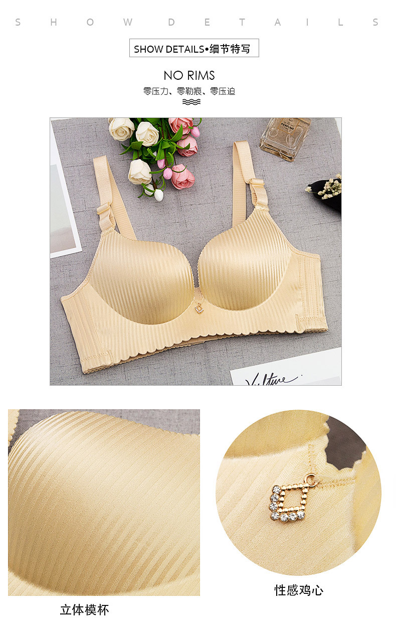 美汇特供:阳光身段2017新款一片式聚拢调整型文胸 性感条纹无钢圈内衣