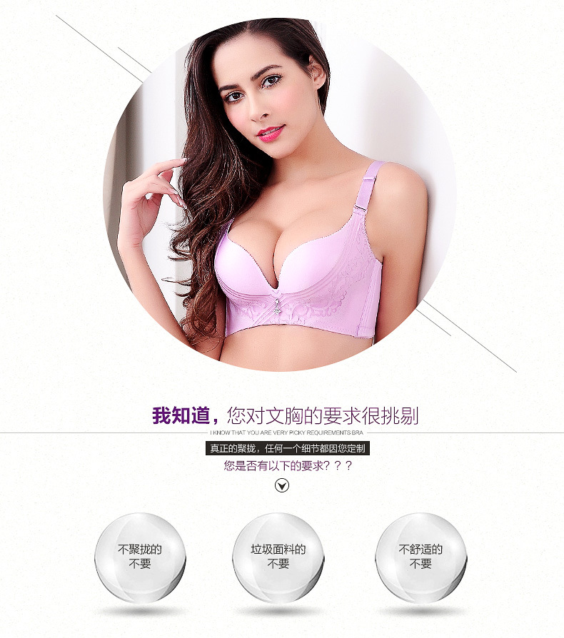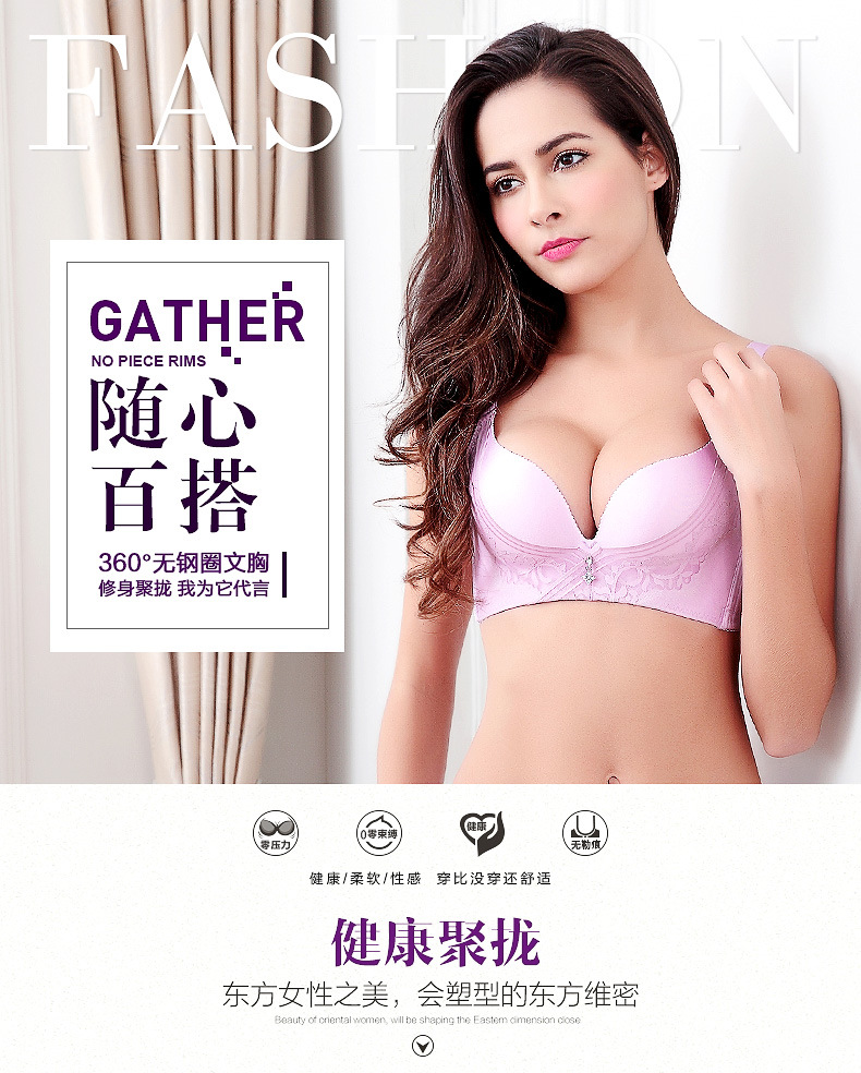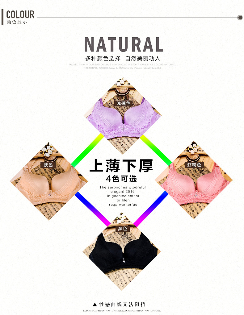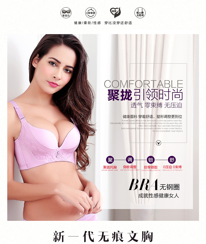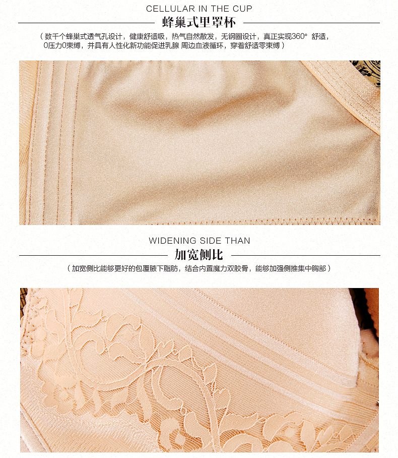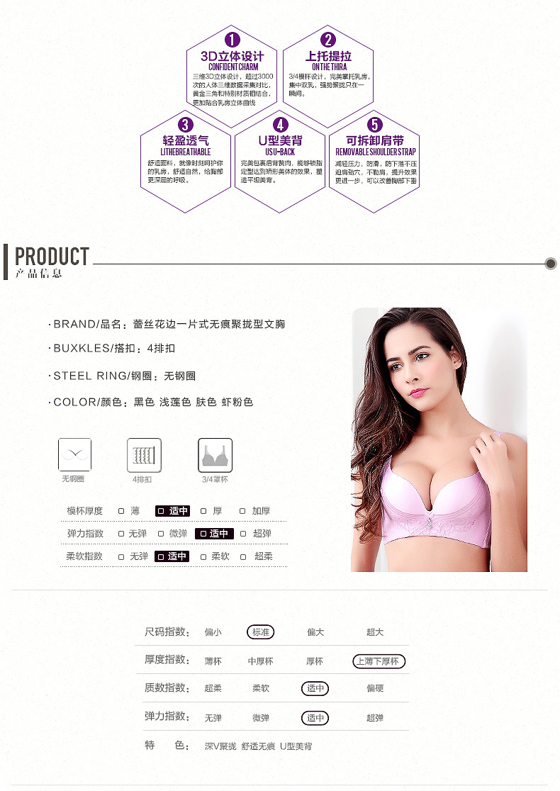 美汇特供:阳光身段2017新款无钢圈性感调整型文胸 一片式无痕蕾丝聚拢型内衣