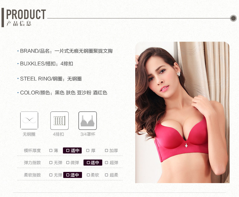美汇特供:阳光身段2017新款美人条文胸聚拢调整型内衣无痕无钢圈胸罩