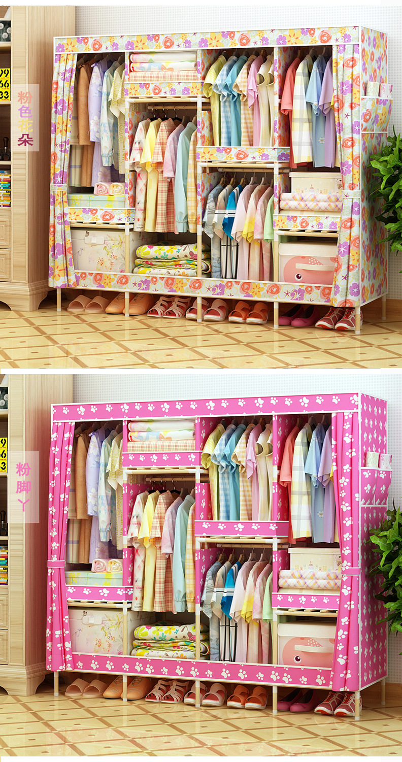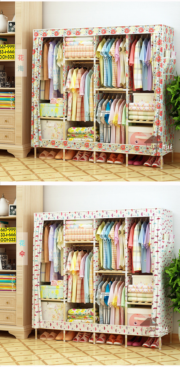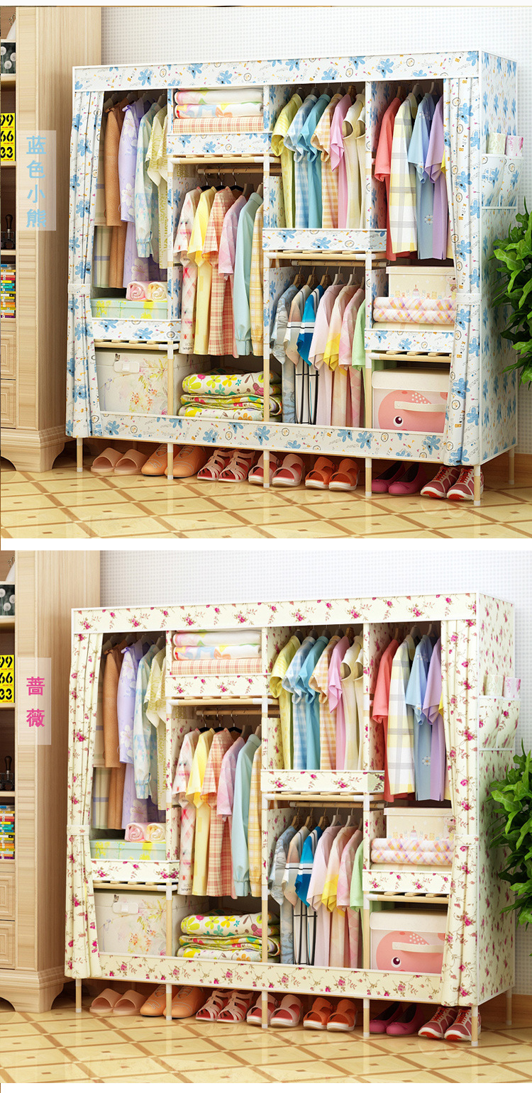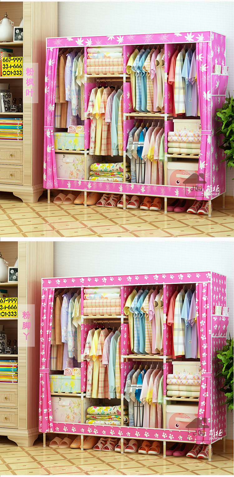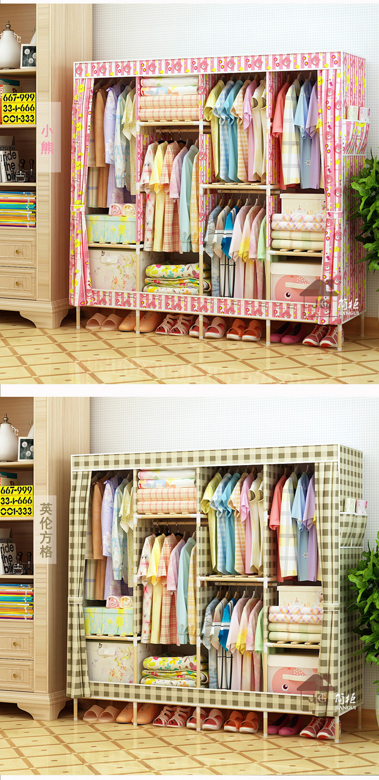 美汇特供:2017新款牛津布简易衣柜加粗实木衣柜布衣柜折叠布衣橱